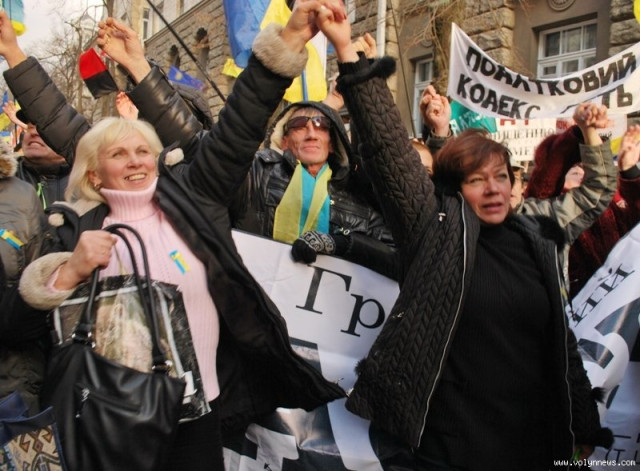 Серед протестувальників - не лише підприємці, а й члени їх сімей, студентство, якого не влаштовує політика міністра освіти Дмитра Табачника та старші люди, що побоюються змін у пенсійному законодавстві.