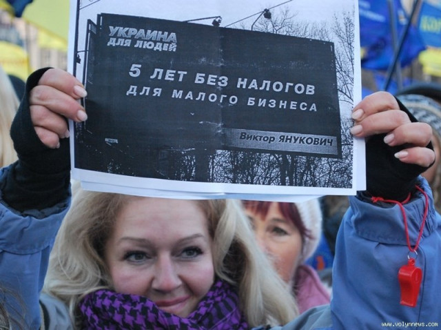 Одна з найбільших акцій протесту з часів Помаранчевої революції зібрала 25 листопада на Майдані незалежності тисячі підприємців, студентів та звичайних громадян, котрі невдоволені політикою діючого уряду.