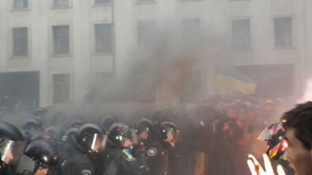 «Беркут»" посилив захист, озброївся щитами і протигазами, знову була спроба штурмувати АП.