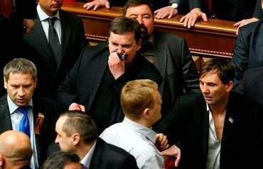Тож регіонали хотіли зірвати прапор, щоб вставити картки тушок та проголосувати. Ми намагалися їм протистояти», - пригадує нардеп.