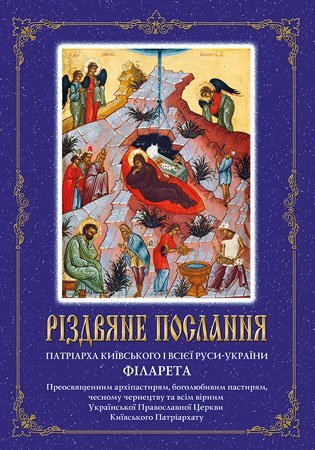 Дорогі браття і сестри! Пам’ятаймо, для чого Син Божий народився від Пресвятої Діви у Вифлеємській печері! А я сердечно вітаю з великим святом Різдва Христового та Новим Роком всю українську паству Київського Патріархату, наших братів і сестер Московського Патріархату, всіх християн України, а також українців в Америці і Канаді, в Європі, Азії і Австралії і по всьому світу. Сердечно вітаю з Різдвом Христовим і Новим Роком Президента України Петра Порошенка, Український уряд, Верховну Раду, Українські Збройні сили, добровольчі батальйони, які захищають українську землю на Донбасі, і весь український народ.