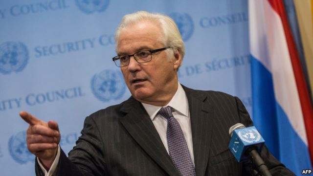 Постійний представник Росії при ООН Віталій Чуркін на нараді в Раді безпеки ООН погрожує зривом переговорів у форматі США-ЄС-Україна-Росія, якщо українська армія виступить проти терористів в Донецькій області, - пише ICTV.