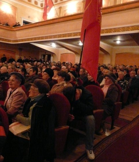 Близько двох годин головний комуніст країни Петро Симоненко спілкувався зі своїми луцькими прихильниками. Зала Палацу культури міста Луцька була наповнена сивочолими пенсіонерами та молодими агітаторами з червоними стягами КПУ, партії «Справедливість», «СДПУ(о)» та «Союзу лівих сил».