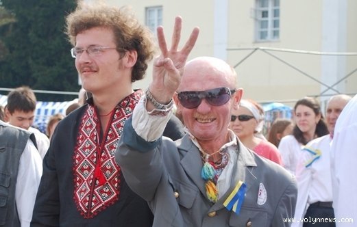 Живу картину - український тризуб - утворили в Луцьку жителі міста. На центральній площі зібралися близько 2-х тисяч людей, одягнених у вишиванки. Багато хто прийшов цілими сім'ями - з онуками і навіть правнуками. Після цього учасники акції пройшли по центральній вулиці до Луцького замку.