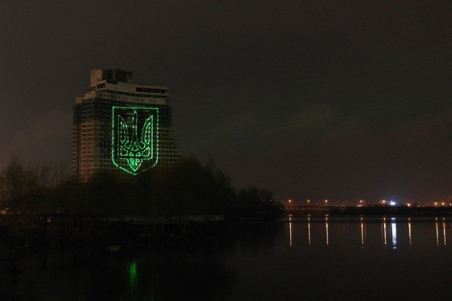 У Дніпропетровську герб України підсвічували на готелі "Парус" на честь свята.
