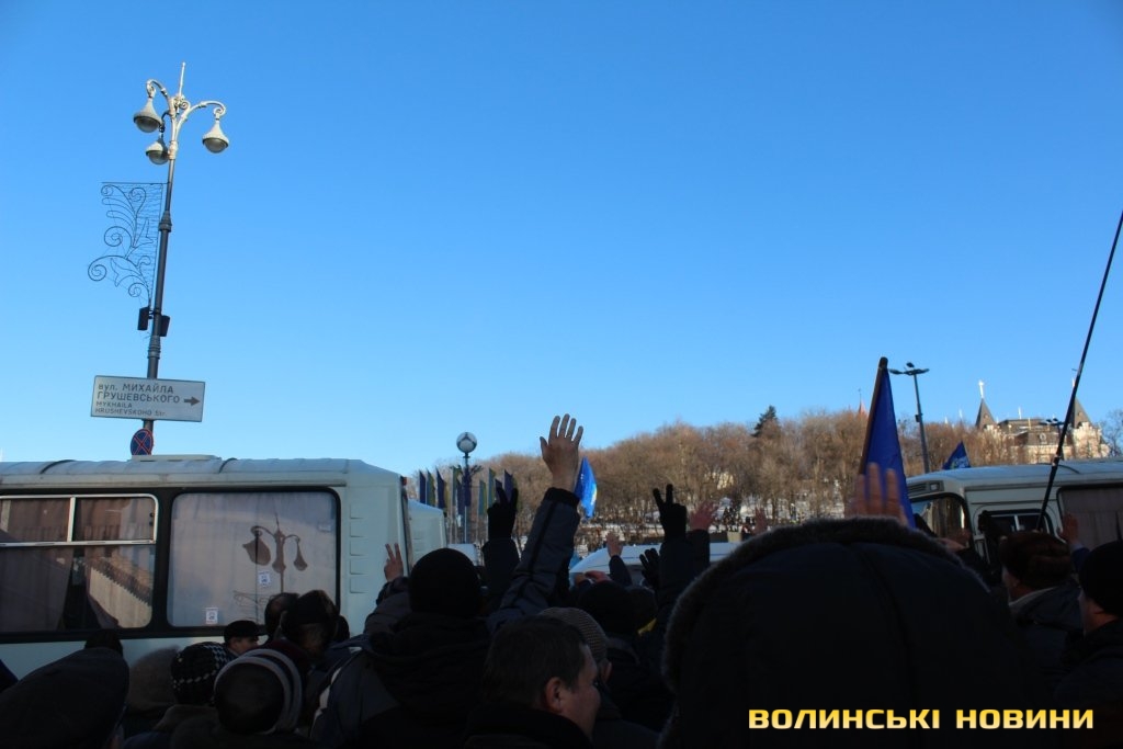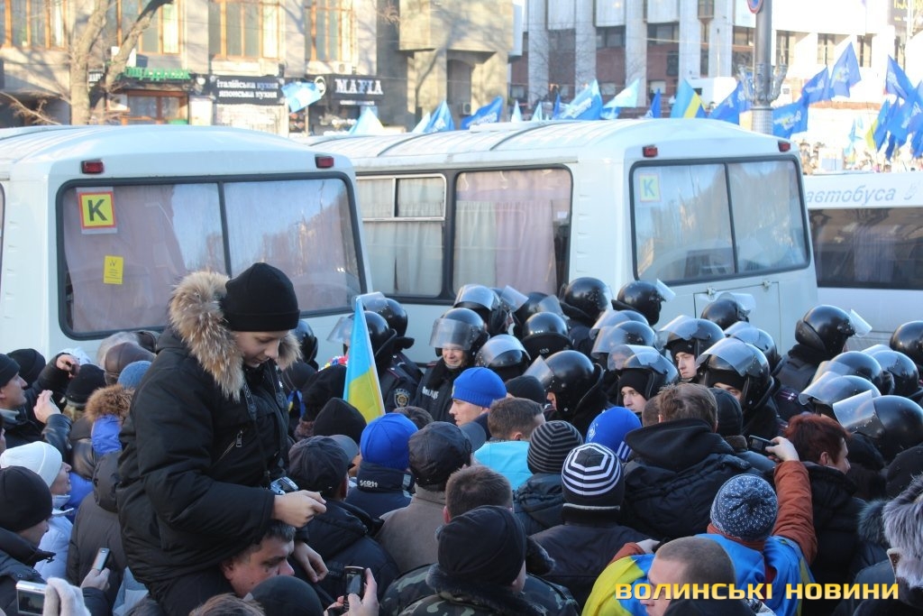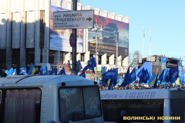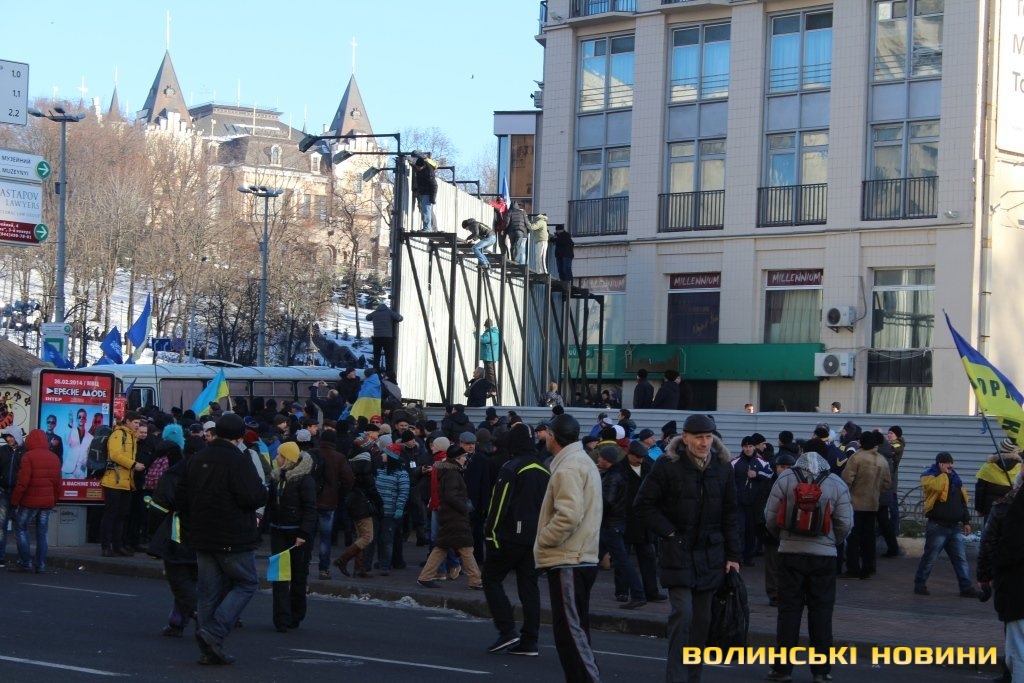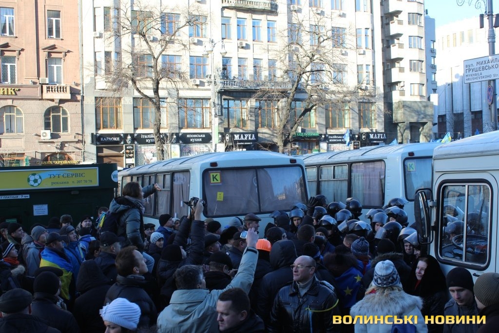 Заблокованими тримають учасників провладного Антимайдану, який стартував 14 грудня на Європейській площі у Києві.