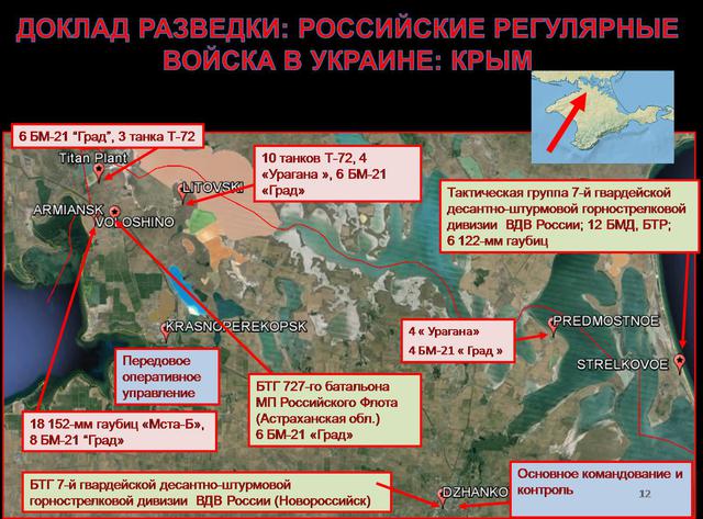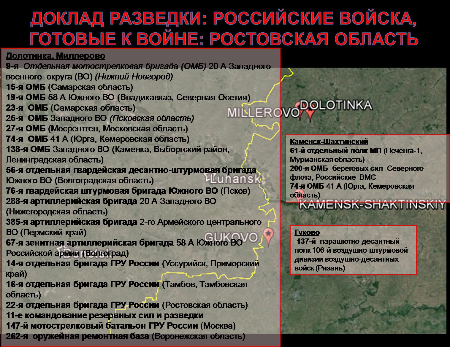 У розпорядження журналістів Цензор.НЕТ потрапила доповідь українських спецслужб, у якій розкрито повну структуру і місця дислокації російських військ та угруповань, задіяних Кремлем у війні проти України, зокрема, під час здійснення розвідувально-підривної діяльності та ескалації конфлікту на території Донбасу та Автономної Республіки Крим на шкоду державній безпеці нашої Батьківщини.