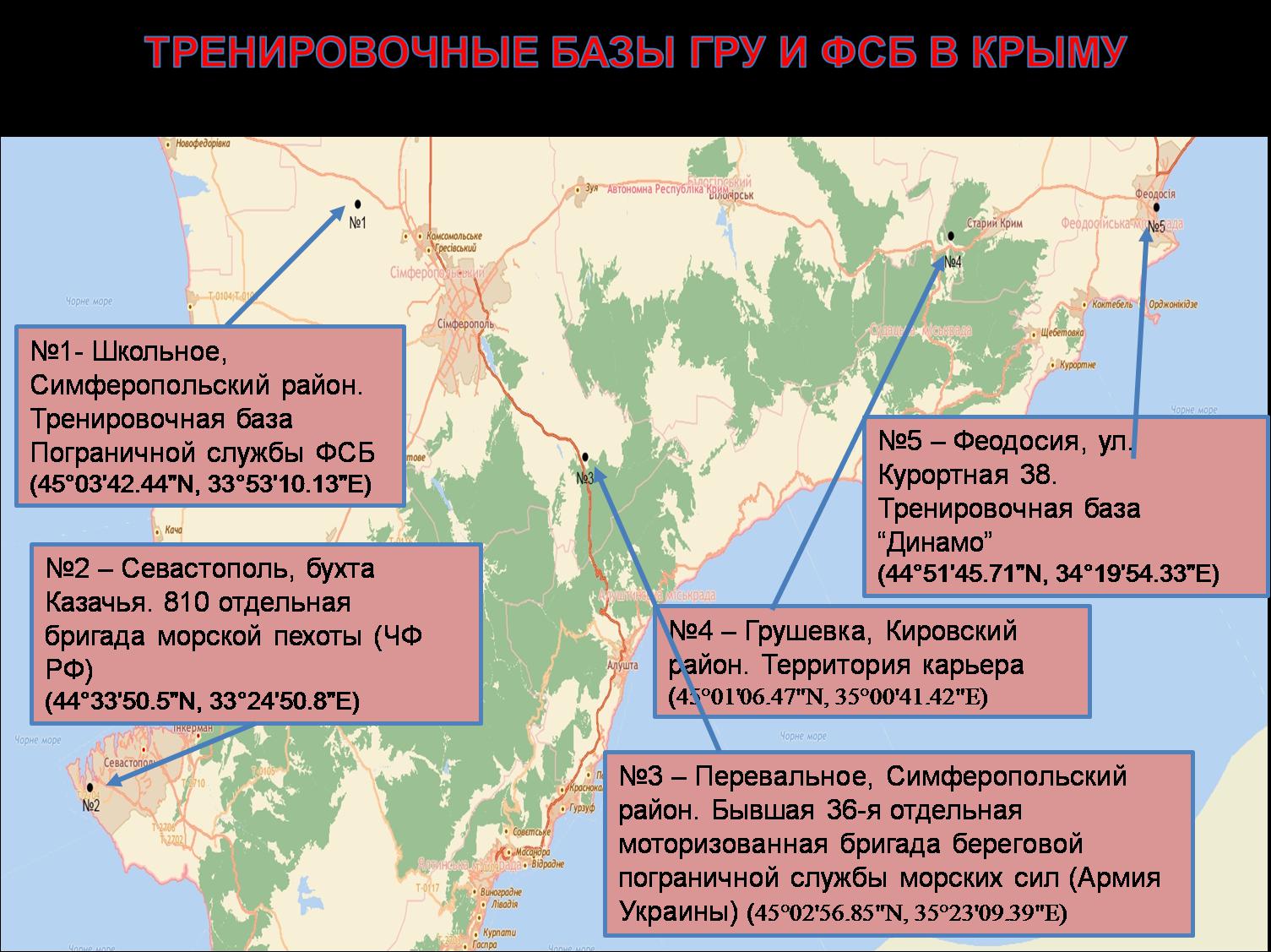 - 1-а Окрема опергрупа 78-го розвідцентру - до березня 2014 на території АРК, під прикриттям російських військових баз в Криму;