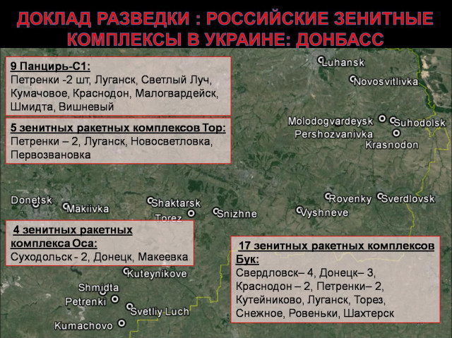Згідно матеріалів доповіді розвідки на Донбасі знаходиться не менше 35 російських зенітних комплексів.