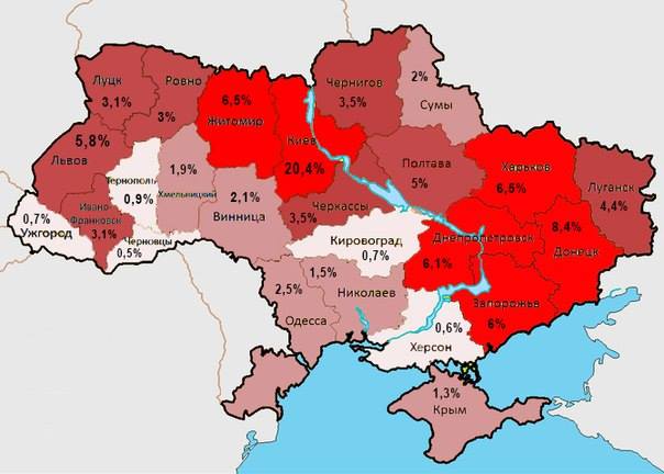 Статистика виявила, що "Азов" не тільки всеукраїнським полк, а й значною мірою саме східноукраїнський - вихідці з цих регіонів (30,5%). Рівне кількість добровольців походить із Північної ( 29,9% ) та Західної ( 27,8% ) України. Південь (11,8%) дав кожного 10-го бійця.