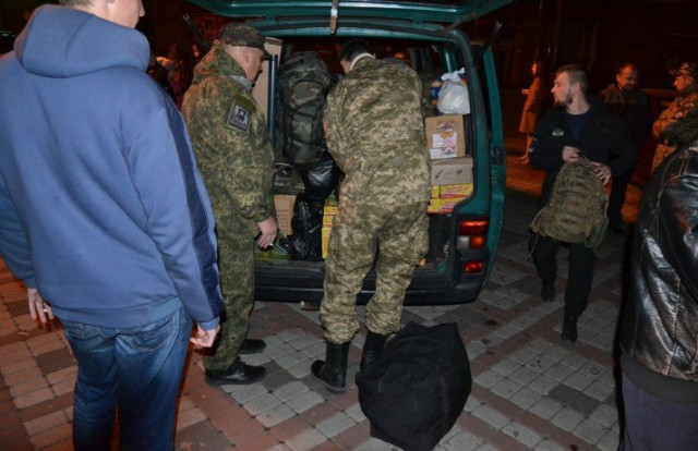 Рідні та усі небайдужі лучани зібралися біля Палацу культури Луцька 6 листопада, аби провести бійців на Схід.