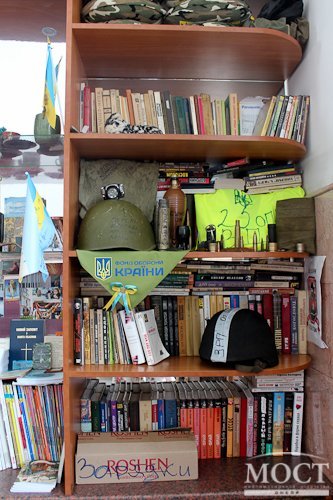 Натомість бійці залишають нам на пам'ять осколки хв, привезені прямо з передової, частинки своєї форми (головні убори), а також власні шеврони. Я вважаю, що незабаром наша колекція стане найбільшою в Україні. Примітно, що після закінчення війни ми передамо все зібране за цей час в музей », - підкреслив він.