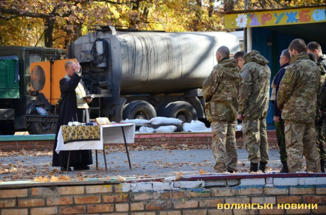 Що ближче до зони бойових дій – то частіше можна зауважити військову техніку, осіб у камуфляжі, озброєних військових та правоохоронців на блокпостах. Місце базування ДУКу розташоване у лісовому масиві, на базі дитячого табору відпочинку. Саме звідси щодня добровольці вирушають у найгарячіші точки Сходу – селище Піски та Донецький аеропорт. Бійці-волиняни зізнаються, що, попри формальне перемир’я, щодня тривають обстріли їхніх позицій з боку сепаратистів. Жодного мирного дня не можуть пригадати ті, хто перебуває на бойових рубежах вже протягом тижнів.