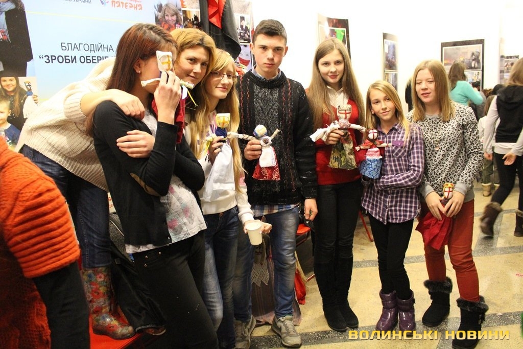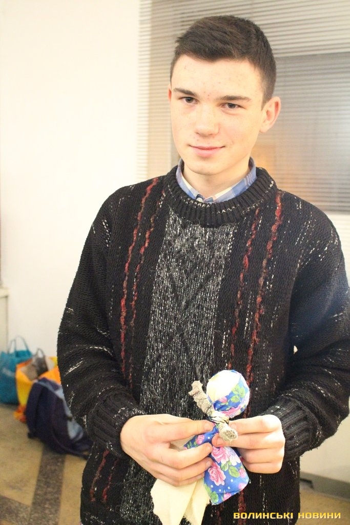 «Хоча на початках і у нас було таке, що якщо людина хворіла, їй робили ляльку, клали поруч і через деякий час мотанку спалювали. Вважалося, що в такий спосіб хворий одужає, бо згорівша лялька знищить хворобу», - ділиться спогадами художниця.Під час організованої акції охочі робили ляльки-«наречену», «берегиню», «благодать». Наприклад, один із наймолодших учасників майстер-класу Марко, разом із мамою Вікторією, виготовили мотанку «козака». Назвав її юний майстер Остапом. Розповідає, що майструвати таку іграшку йому дуже сподобалося. З мамою вони часто відвідують подібні заходи.Вперше у житті оберіг для українських військових виготовив і Максим: «Долучився до цієї акції охоче. Бо знаю, що це часточка тепла, оберіг, який нагадає нашим військовим, що ми про них піклуємося і намагаємося хоча б у такий спосіб оберегти їх від біди».Спогадами про давню українську традицію поділилася і Марійка. Вона розповіла, як її бабуся, яка жила у селі Угринів на Волині, щодня до схід сонця обходила власну хату з піднятими догори руками. Це робилося задля початку щедрого, плодючого, доброго дня. Така традиція і відобразилася на виготовлені мотанки з догори піднятими руками, яку ще називають лялька-«благодать».Також майстрині розповіли, що символом плодючості у ляльці вбачався розмір грудей. Чим вони більші, тим, вважалося, багатшими будуть врожаї.Ініціатор майстер-класу, художниця Тетяна Мялковська пригадує зустріч із волонтеркою Іриною, її розповіді про українських бійців на Сході, їхні трепетні переживання від отриманих дитячих малюнків і листів. Ці розмови й надихнули на організацію благодійної акції.