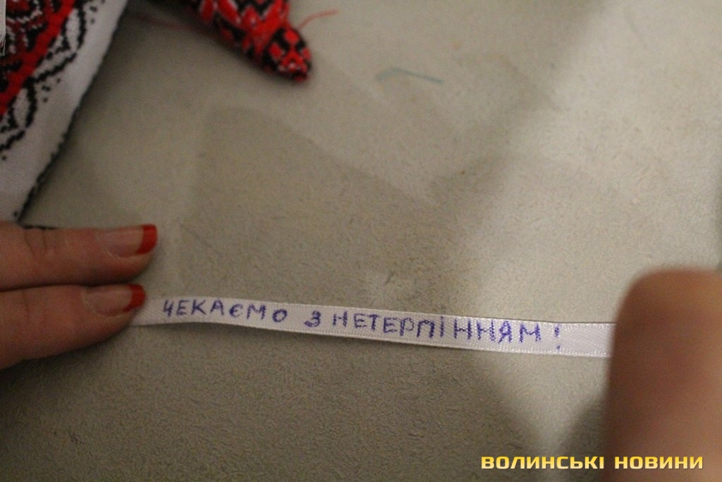 Усі виготовлені ляльки-мотанки зібрали у спеціальний ящик і віддали волонтерам, які вже цими днями відправлять їх добровольцям на Схід. Кожен оберіг ще й має підпис із побажанням для військових.