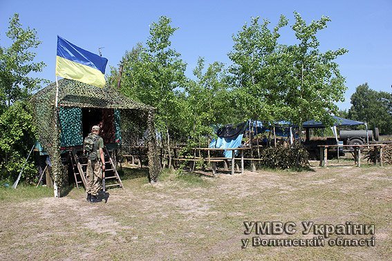 Під відкритим небом правоохоронці облаштували справжнє військове містечко. На його території розбили кілька наметів, неподалік «працює» польова кухня. Є «санвузол», літній душ і навіть… стадіон. А ще тут діють свої правила та чіткий розпорядок дня.