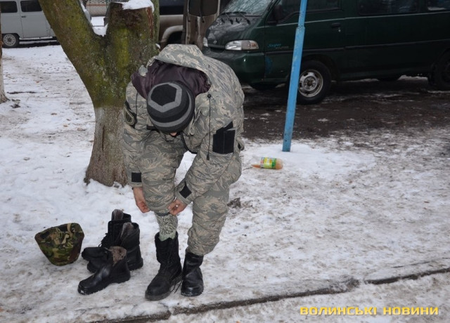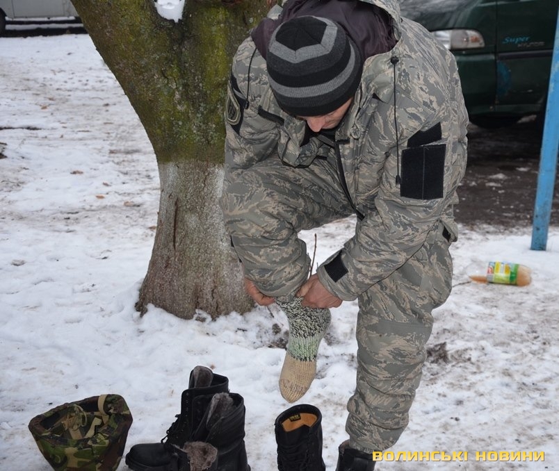 Саме не вистачало берців 43-ого розміру. А вже 6-ого грудня з Луцька відправляли сімох бійців на ротацію в Піски. Чи не за день подзвонила волинянка.., принесла на базу волинського ДУКу взуття.
