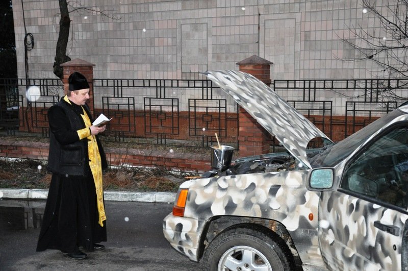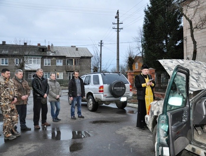 Настоятель Свято-Миколаївського храму м. Каменя-Каширського отець Володимир освятив автомобіль та передав хлопцям на передову ладанки і іконку, щоб оберігали бійців.