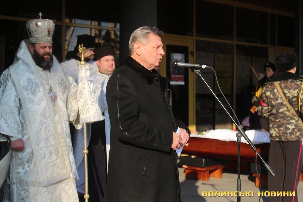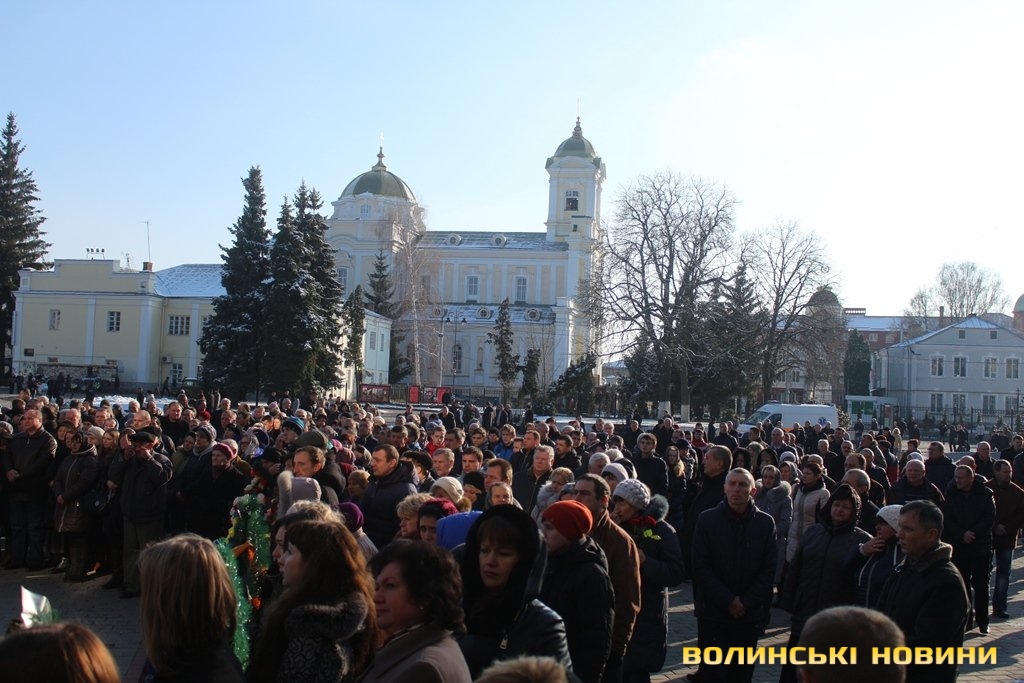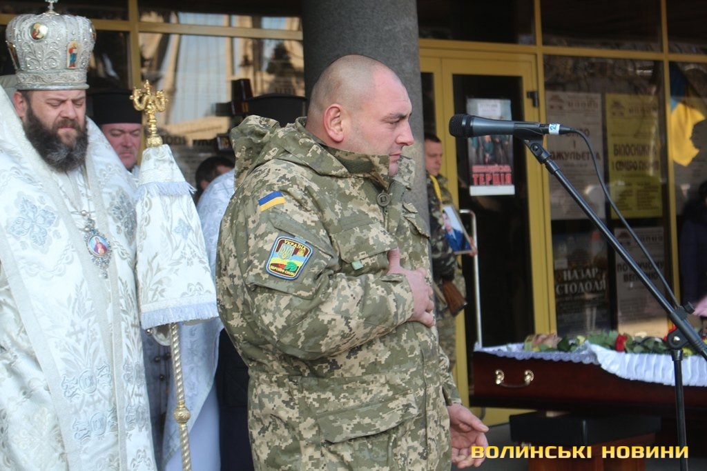 Вшанувати пам'ять воїна, окрім родини, прийшли представники влади, духовенства та просто небайдужі лучани.«Сьогодні у Луцьку день жалоби. Місто сумує, бо проводжає в останню путь Героя України, нашого захисника, який віддав своє життя за свободу і незалежність нашої держави. За наше щасливе майбутнє, всіх, хто мешкає на території України. Висловив щирі слова співчуття родині загиблого. Я розумію, що напевно немає таких слів, якими можна було б втішити ваше горе. Але ми разом з вами будемо молитися за Валерія та всіх захисників України які полягли за суверенітет нашої держави», - звернувся до громади Луцький міський голова Микола Романюк.Після цього усі присутні вшанували пам'ять героя хвилиною мовчання.