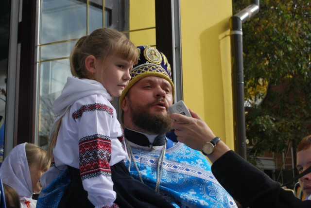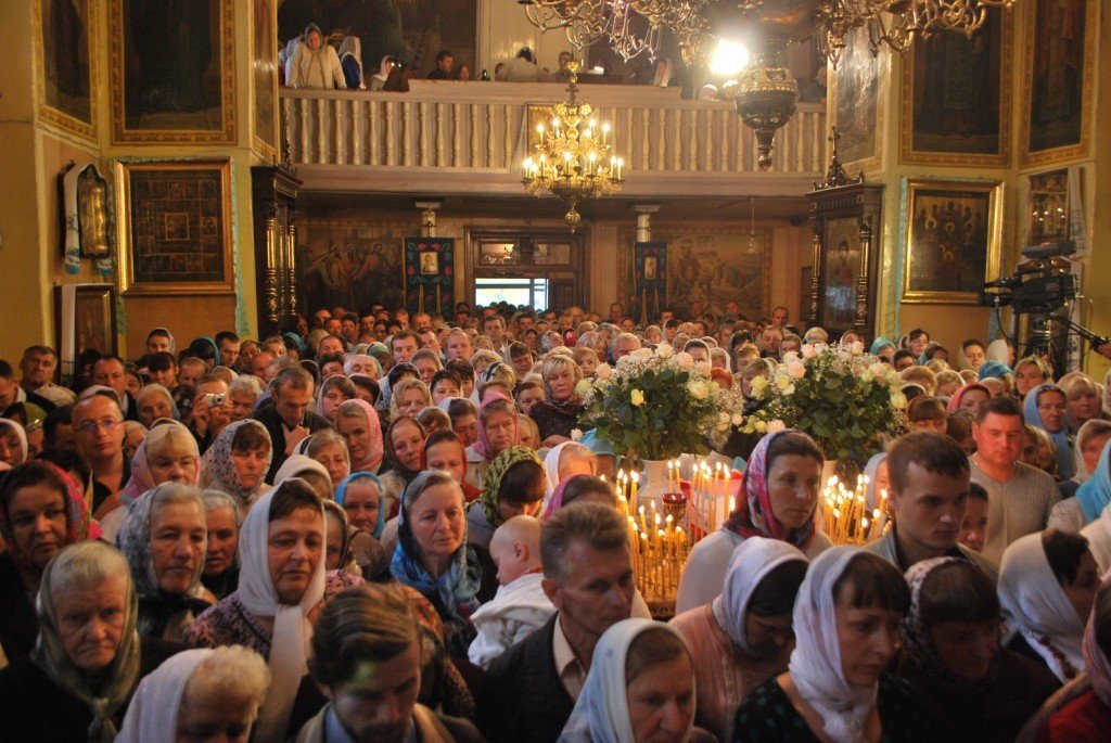 Престольне свято у кафедральному Свято-Покровському храмі Луцька завжди збирає стільки людей, що їх не може вмістити церковне подвір’я. Так, вчора, 14 жовтня, була відслужена Божественна Літургія, яку очолив архімандрит Аліпій (Сапіга). Під час заходу діток, чиї тати перебувають в зоні АТО, одягнули у вишиванки.
