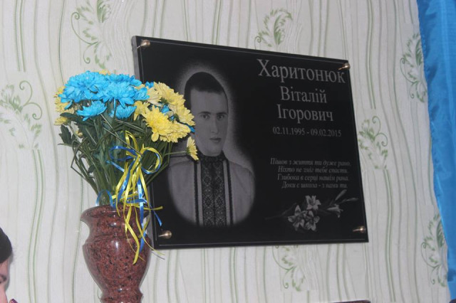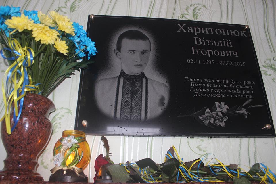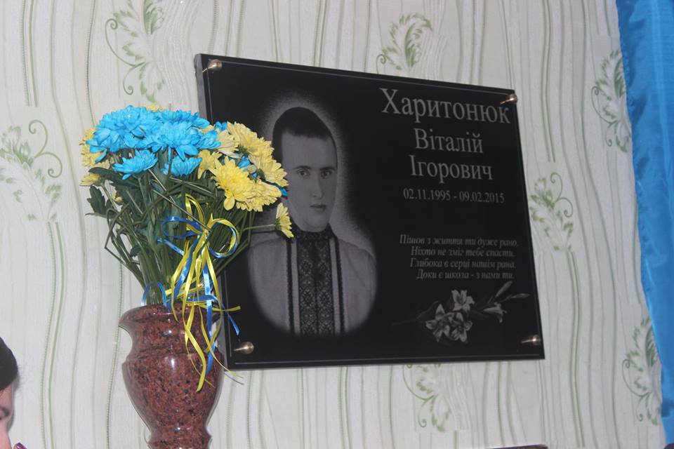 Меморіальну дошку загиблому в АТО солдату ЗСУ Віталію Харитонюку відкрили у приміщенні школи села Четвертня.