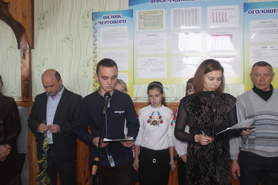 "Ваш односельчанин, однокласник, син, учень став Героєм, якого ви маєте пам’ятати завжди. Говорять: "Ми живі поки про нас існує пам’ять." Пам’ятайте про нього. Цей Герой загинув за нас всіх. Він захистив нас!", - сказав у своїй промові автомайданівець Дмитро Василенко.