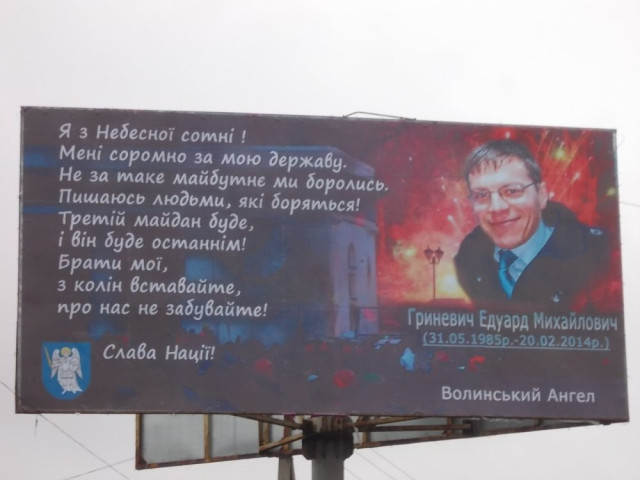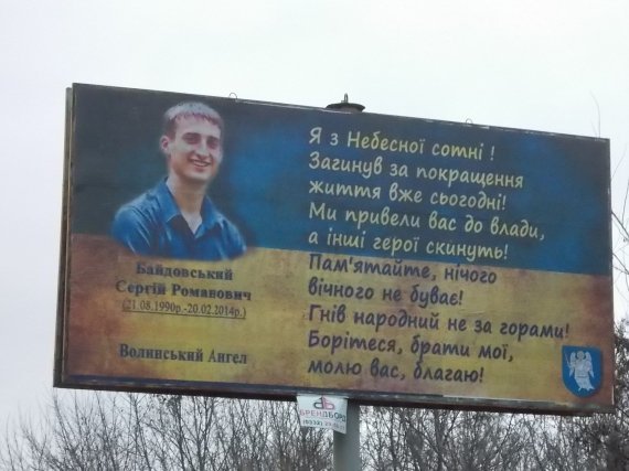 Білборди із портретами волинських героїв "Небесної сотні" з'явилися на вулицях Луцька. Ця акція присвячена другій річниці розстрілів на Майдані. Про це розповів організатор акції Богдан Усік, - інформує Gazeta.ua.