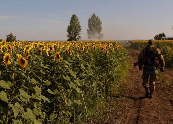 На фото - українські бійці до і після бою, різні моменти військових сутичок і жовті українські соняхи під блакитним небом. Фото Сергія Лойка традиційно вражають шаленою емоційністю.