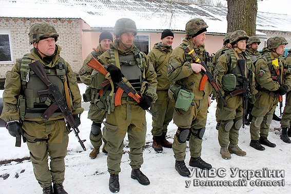 Бійці роти спецпризначення МВС «Світязь» вирушили на бойове завдання. Хлопці повністю екіпіровані не гірше миротворчих військ ООН, каже начальник УМВС Волинської області Петро Шпига.