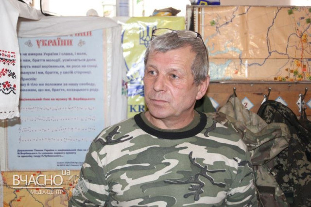 За те, щоб у їдальні були продукти, а в кімнатах тепло, відповідає військовий пенсіонер з Луцька Володимир. Це людина з особливим почуттям гумору. Народився в Грузії, живе в Україні. Вдома його чекають дружина, син, дві внучки, мама і сестра. У 54 роки Володимир пішов добровольцем в АТО. Тепер його родиною стало прикордонного підрозділу.