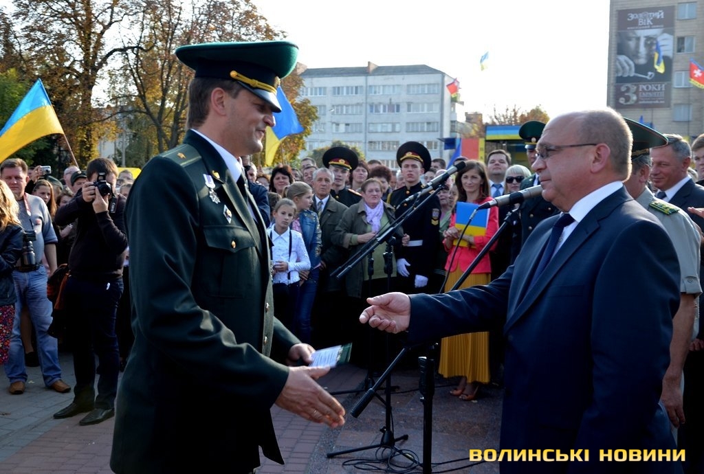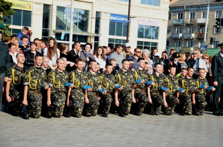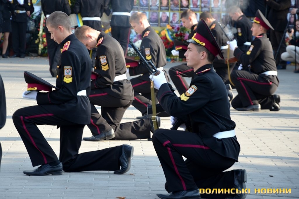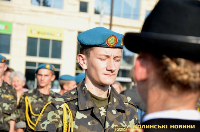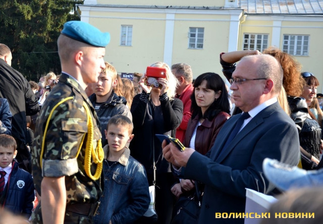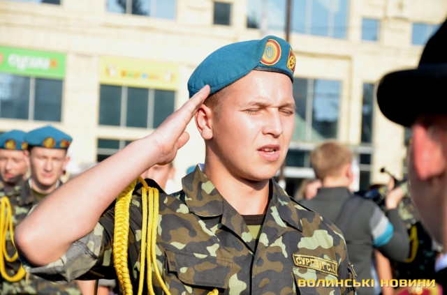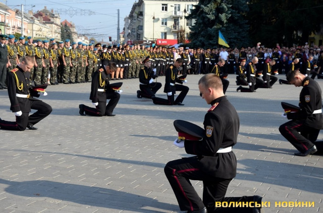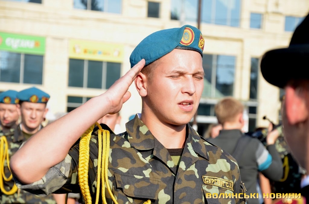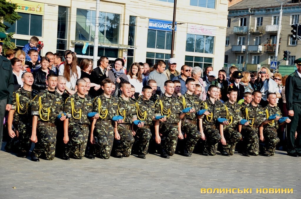 Своєю чергою, міський голова Микола Романюк додав: «Приємно, що нині на Театральному майдані стільки лучан зібралося не заради громадянської панахиди, яких не одну провели на цій площі. Тут зібралися майбутні офіцери, які будуть захищати цю державу з патріотизмом у серці».