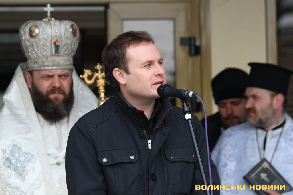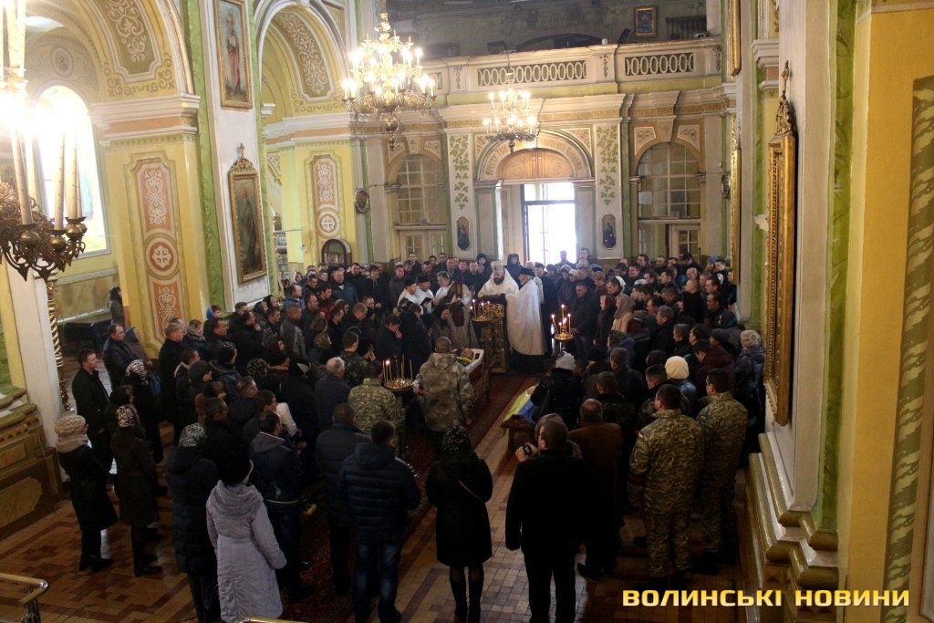 Митрополит Луцький та Волинський Михаїл зауважив, що напередодні Святої Пасхи душа кожного християнина готується зустріти світле Христове Воскресіння, усі - в очікуванні чогось приємного і доброго. Втім, причина, з якої сьогодні зібралися в храмі лучани, засмучує це свято, тому що пелена смерті покрила молодого чоловіка з великою душею. Він зазначив, що хоч і не всі тепер стоять на передовій зі зброєю в руках, але наша спільна участь та співпереживання – добровольця, волонтера є станом душі Героя, великої людини, яка присвятила своє життя ближнім.