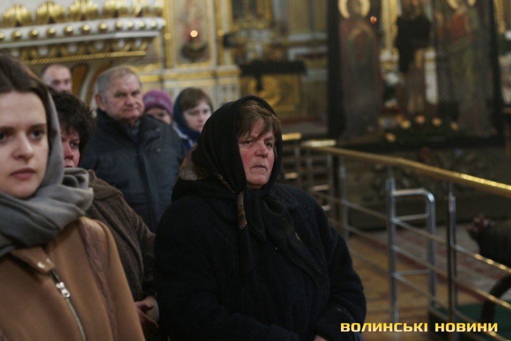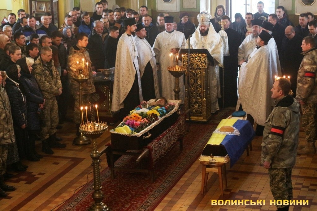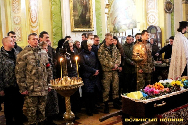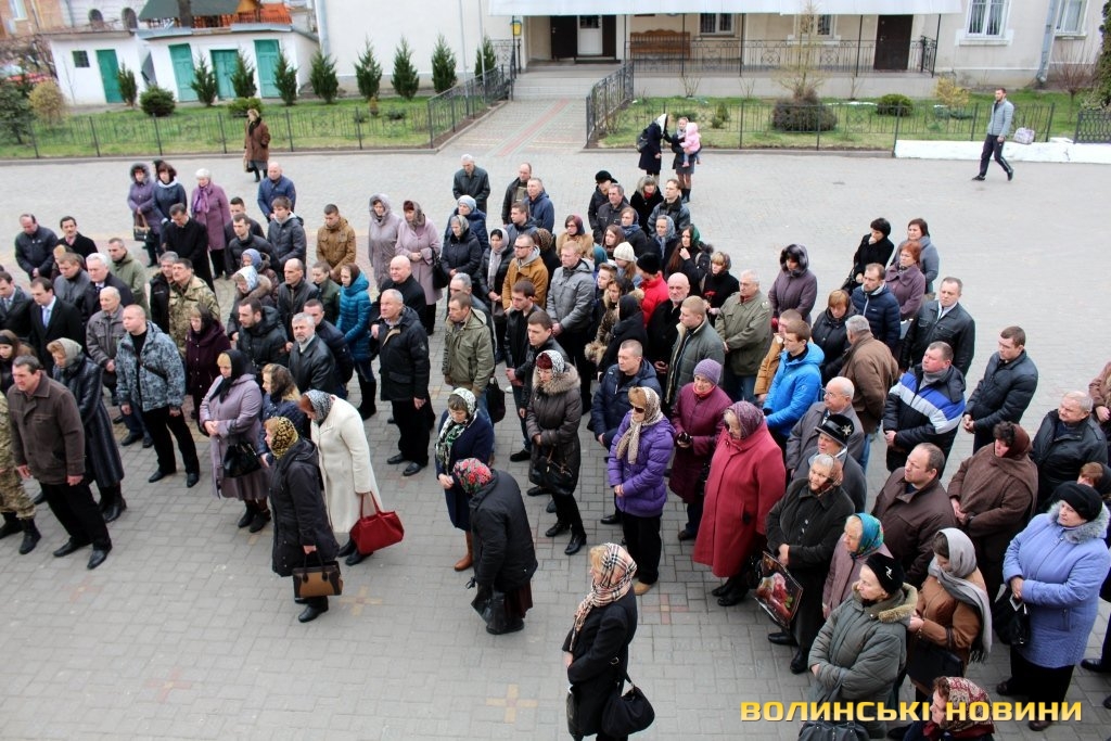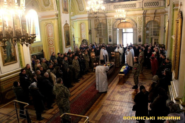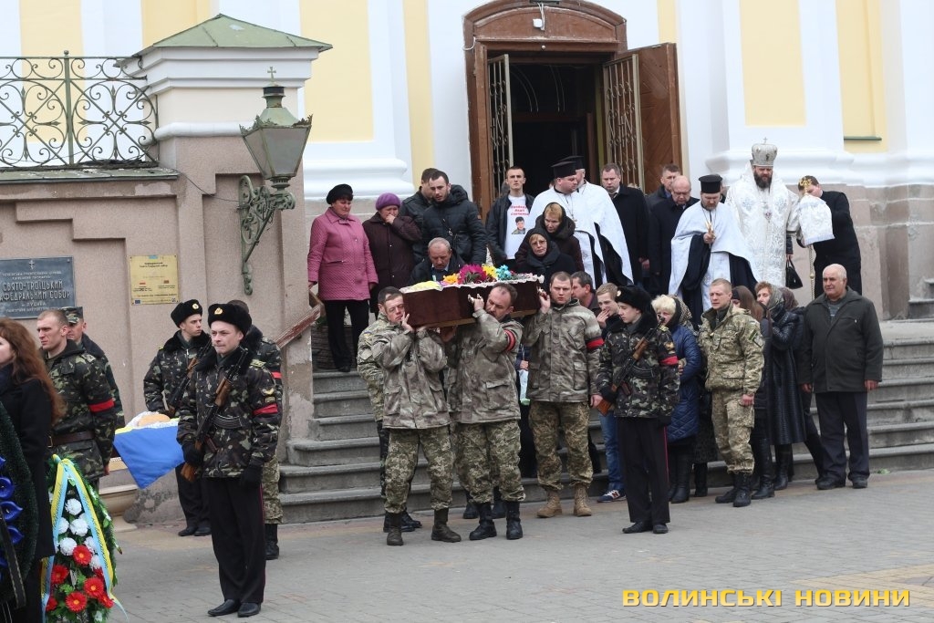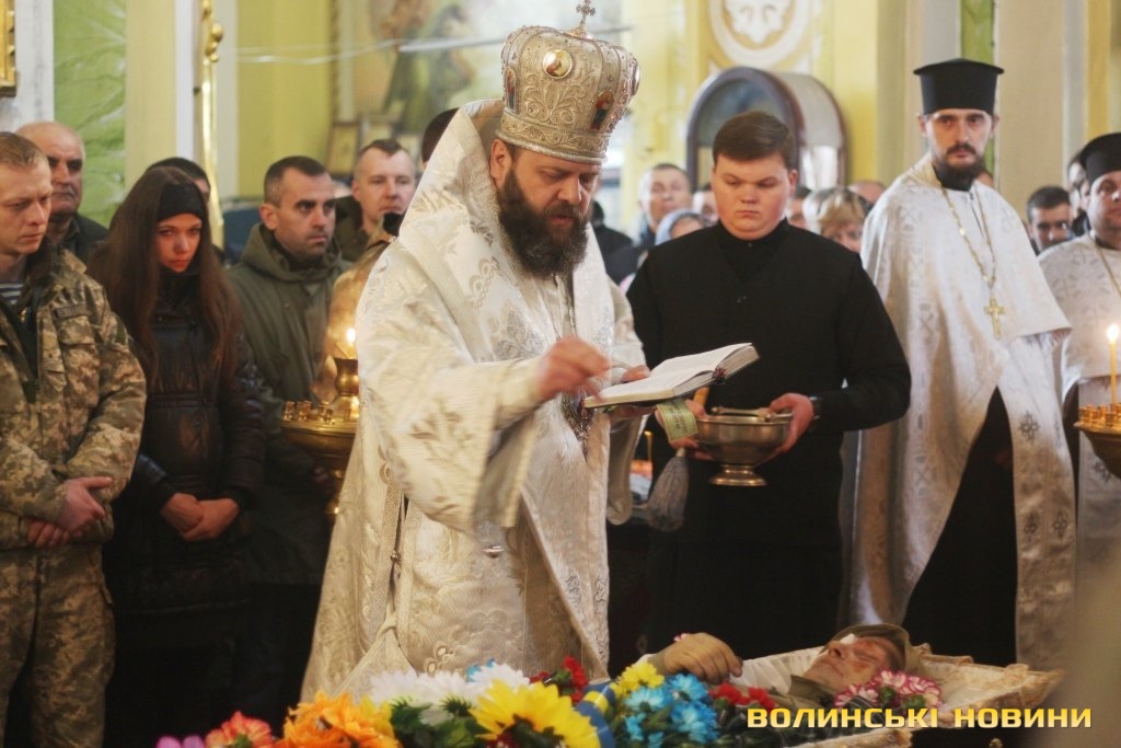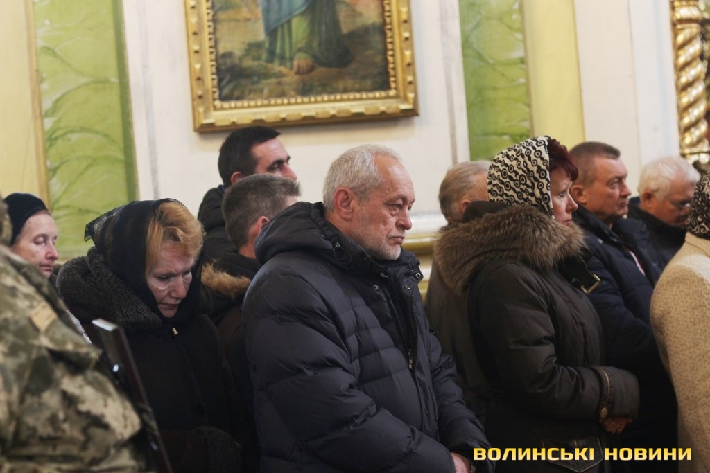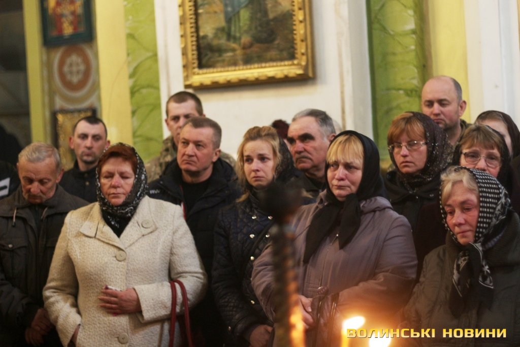 Відспівували полеглого героя у Свято-Троїцькому кафедральному соборі. Митрополит Луцький та Волинський Михаїл зазначив, що душі волинян сьогодні знову скорботні, тому що у храмі зібралася громада не для сповіді, як зазвичай у цей час, а для того, щоб помолитися за вбитого Героя.