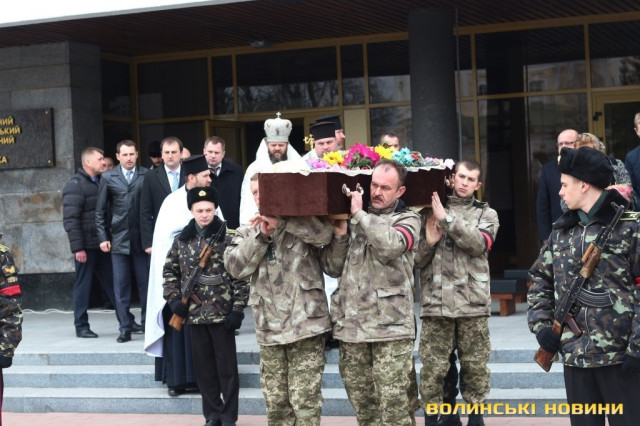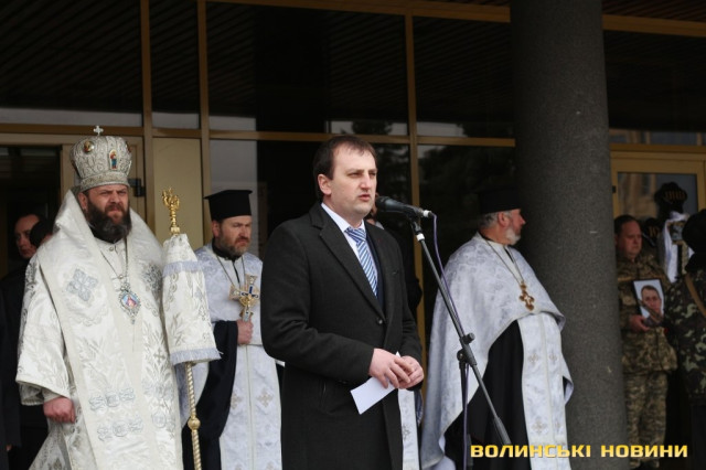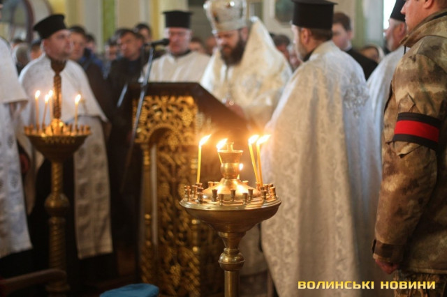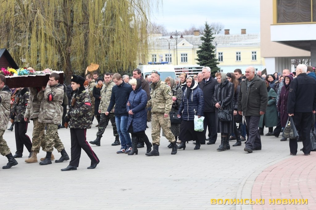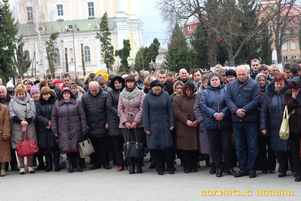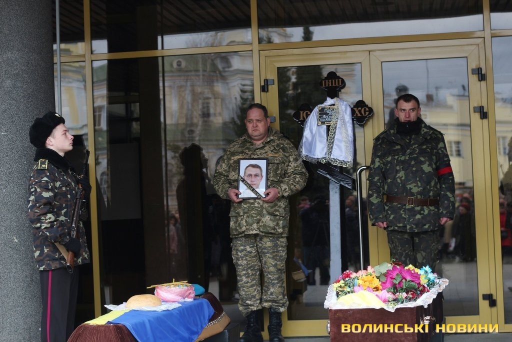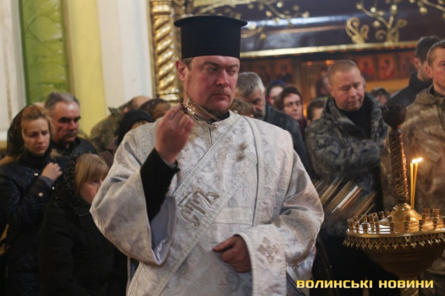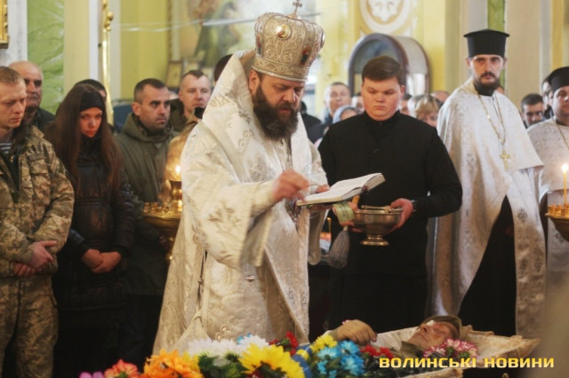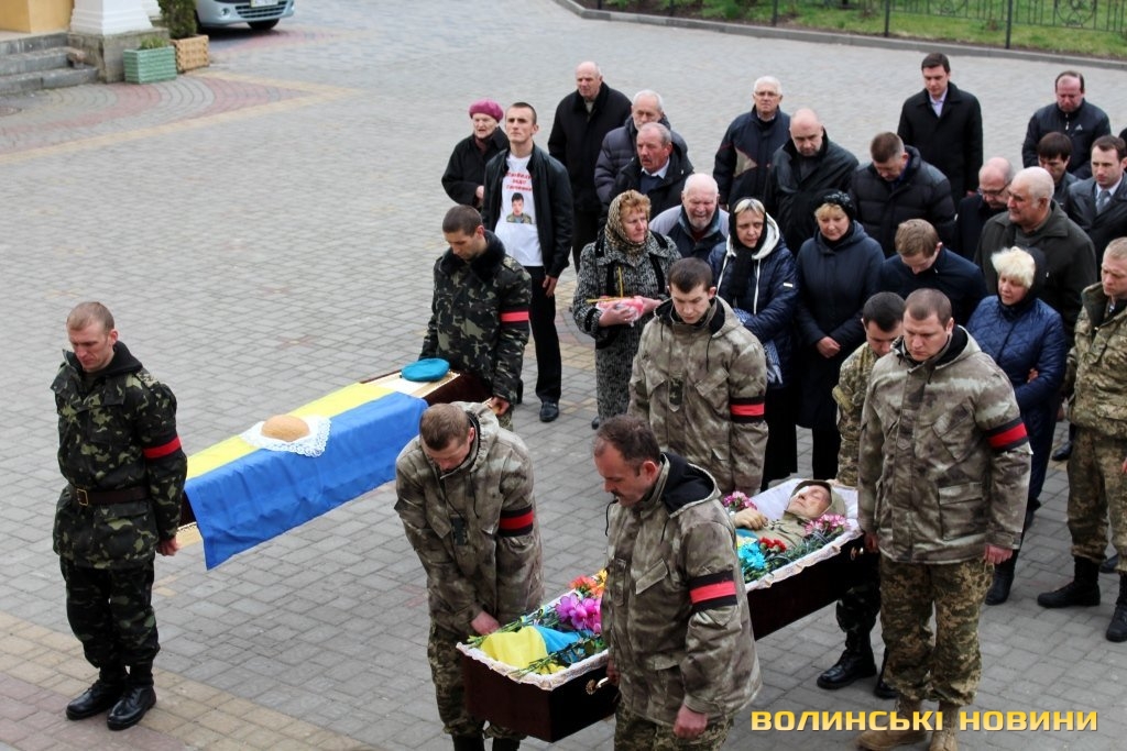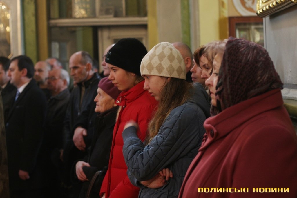 Відспівували полеглого героя у Свято-Троїцькому кафедральному соборі. Митрополит Луцький та Волинський Михаїл зазначив, що душі волинян сьогодні знову скорботні, тому що у храмі зібралася громада не для сповіді, як зазвичай у цей час, а для того, щоб помолитися за вбитого Героя.
