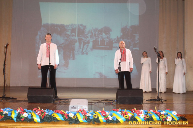 В холі розташувалися стенди з фотографіями з Іловайська. Зі світлин на всіх небайдужих дивилися іще живі бійці.Два роки тому, 29 серпня 2014 року, українські бійці потрапили у пастку терористам під час виходу з оточення «зеленим коридором». Тоді у спини солдат полетіли кулі. Іловайський рахунок, реквієм в цифрах: 366 загиблих, 429 поранених, 128 полонених та 158 зниклих безвісти українців. Моторошно те, що імена багатьох героїв встановили лише завдяки аналізам ДНК.За Іловайськ своїм життям заплатили численні волиняни, зокрема бійці 51-ої Володимир-Волинської окремої механізованої бригади, роти спеціального призначення «Світязь», а також воїни-добровольці.Усіх поіменно згадали під час хвилини мовчання. Після чого на сцену вийшли вокальні колективи та Волинський академічний народний хор.Після офіційної програми відбулося урочисте покладання квітів до стелли пам’яті загиблим героям. Військові преклонили коліна, а рідні загиблих не стримували сліз, коли торкалися знімків своїх героїв.За весь період невизнаної війни в зоні АТО загинуло 168 волинян, з них – 30 лучан. В пам’ять про них, сьогодні, в день Успіння Пресвятої Богородиці у Луцькому Свято-Троїцькому кафедральному соборі провели панахиду.