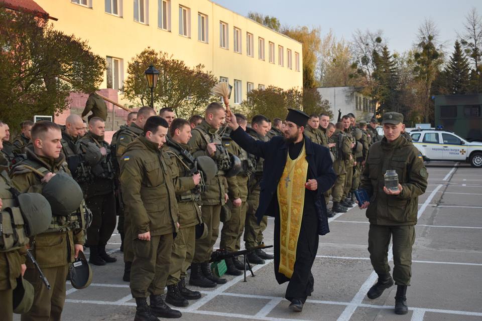 Благословив бійців військовий капелан гвардійців отець Сергій, який справив спільну молитву за мир на всій Україні і окропив особовий склад святою водою.