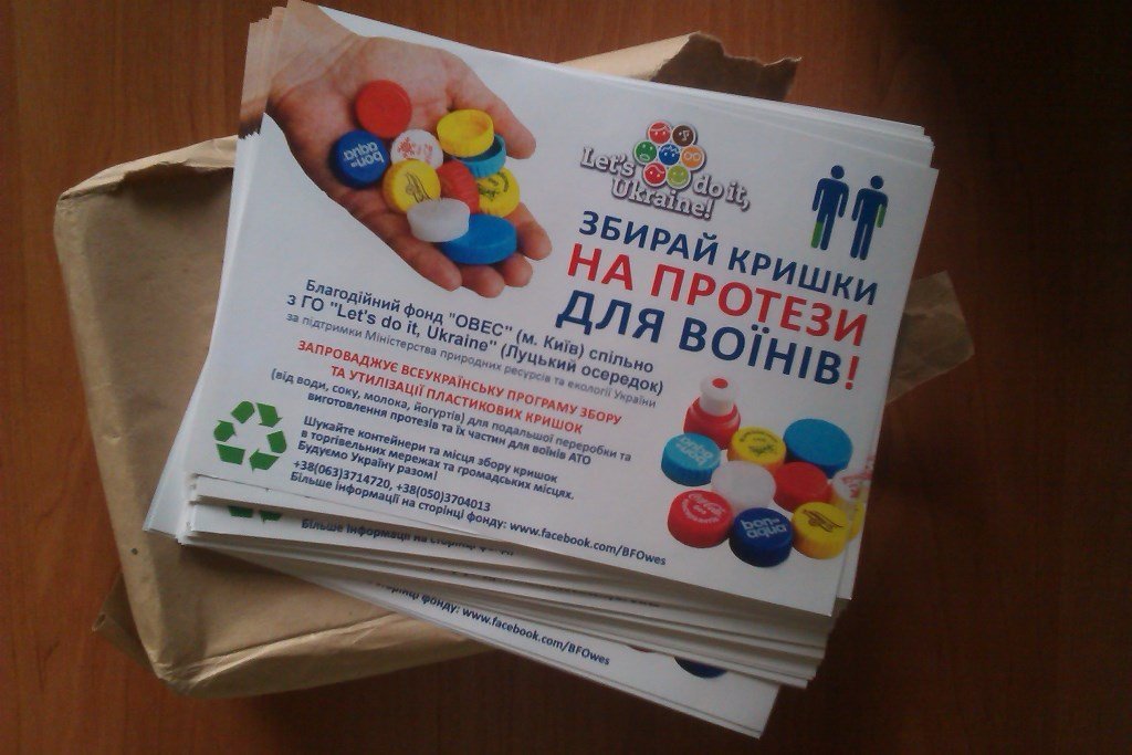 Нагадаємо, учасники всеукраїнського проекту «Let's do it, Ukraine» спільно з Благодійним фондом «ОВЕС» (Київ) оголосили у Луцьку збір кришечок від напоїв для подальшої переробки та виготовлення протезів та їх частин для воїнів АТО.