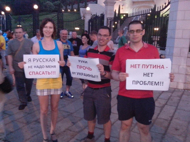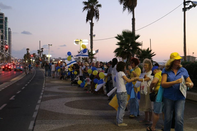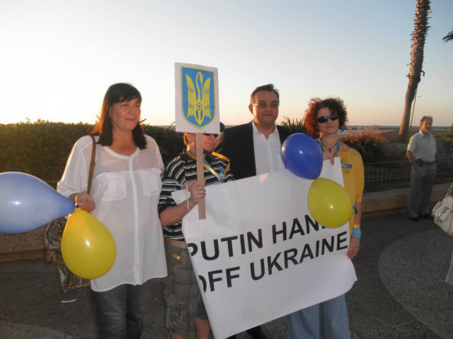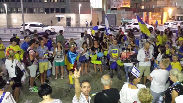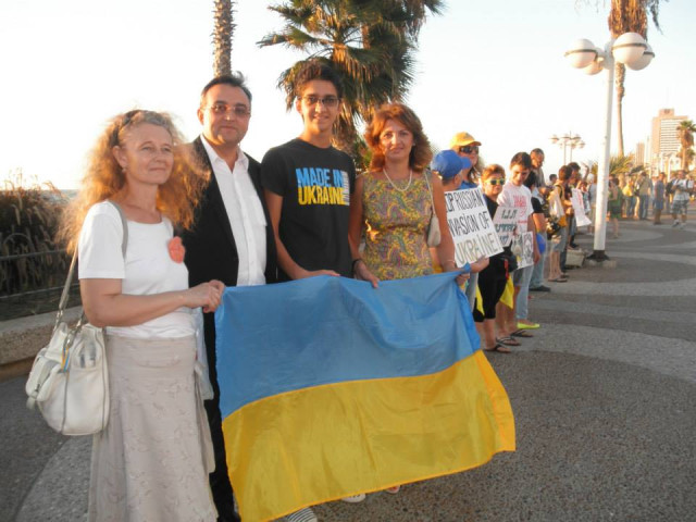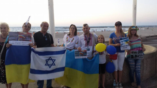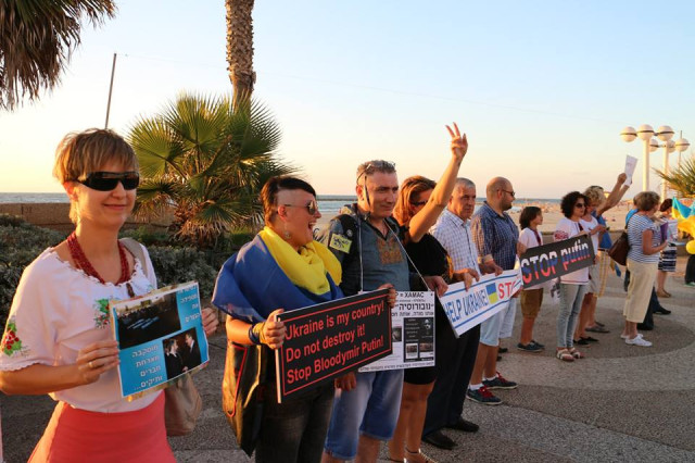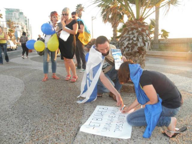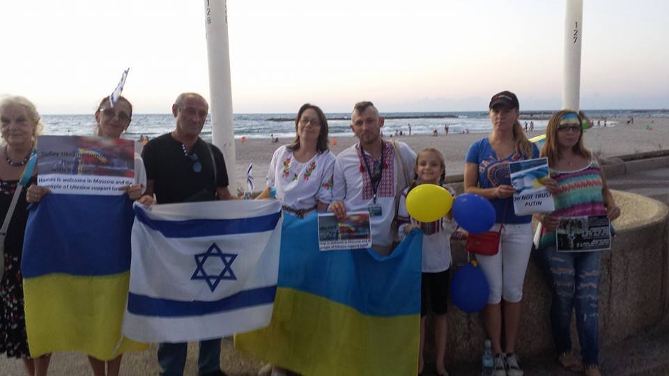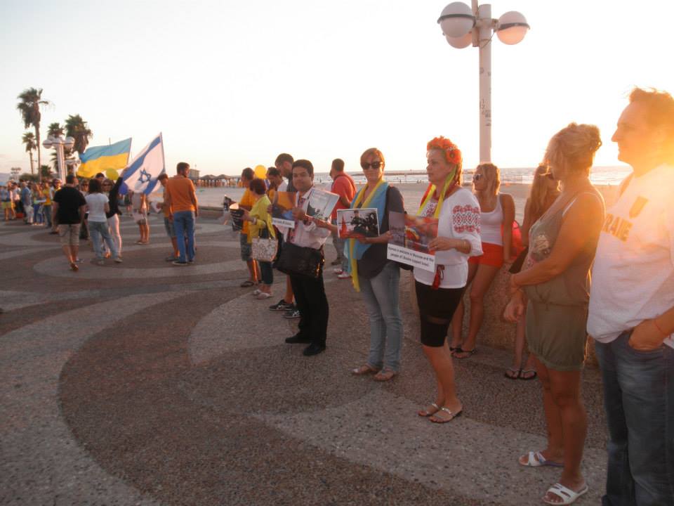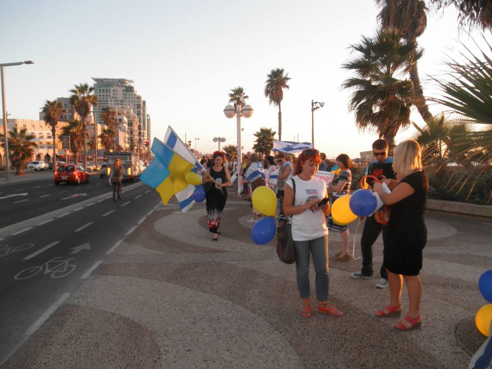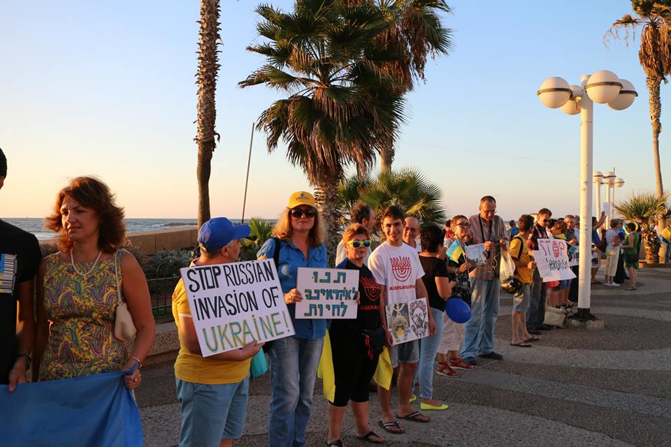 Ініціатором акції стали активісти Фейсбук-спільноти «Israel supports Ukraine», які окрім іншого займаються збором коштів та речей на потреби української армії. Паралельно одна одній відбувалось дві акції – одна в Тель-Авіві, а друга в північній столиці Ізраїлю – Хайфі. Як розповів у коментарі Інформаційному агентству Волинські Новини Макс Фрімен, таким чином ізраїльтяни хотіли висловити Україні свою солідарність і підтримку, а також привернути увагу міжнародної спільноти до «українського питання». З його слів, акції не випадково відбувались навпроти американського посольства, а плакати, в основному, були на англійській мові.