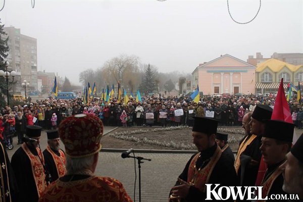 Після усіх приготувань і заповнення людьми площі Героїв Майдану, акція була розпочата емоційним читанням вірша від маленької ковельчанки. Далі слово взяв міський голова Олег Кіндер. Продовжився захід панахидою, яку провели священники ковельських церков. Опісля усі присутні рушили хресною ходою до місця вшанування Борців за волю України, де продовжилося богослужіння.