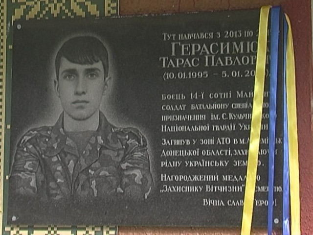 Нещодавно на будівлі коледжу встановили меморіальну дошку на честь бійця, яку освятили священики Української Православної Церкви Київського Патріархату.