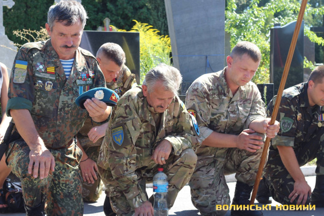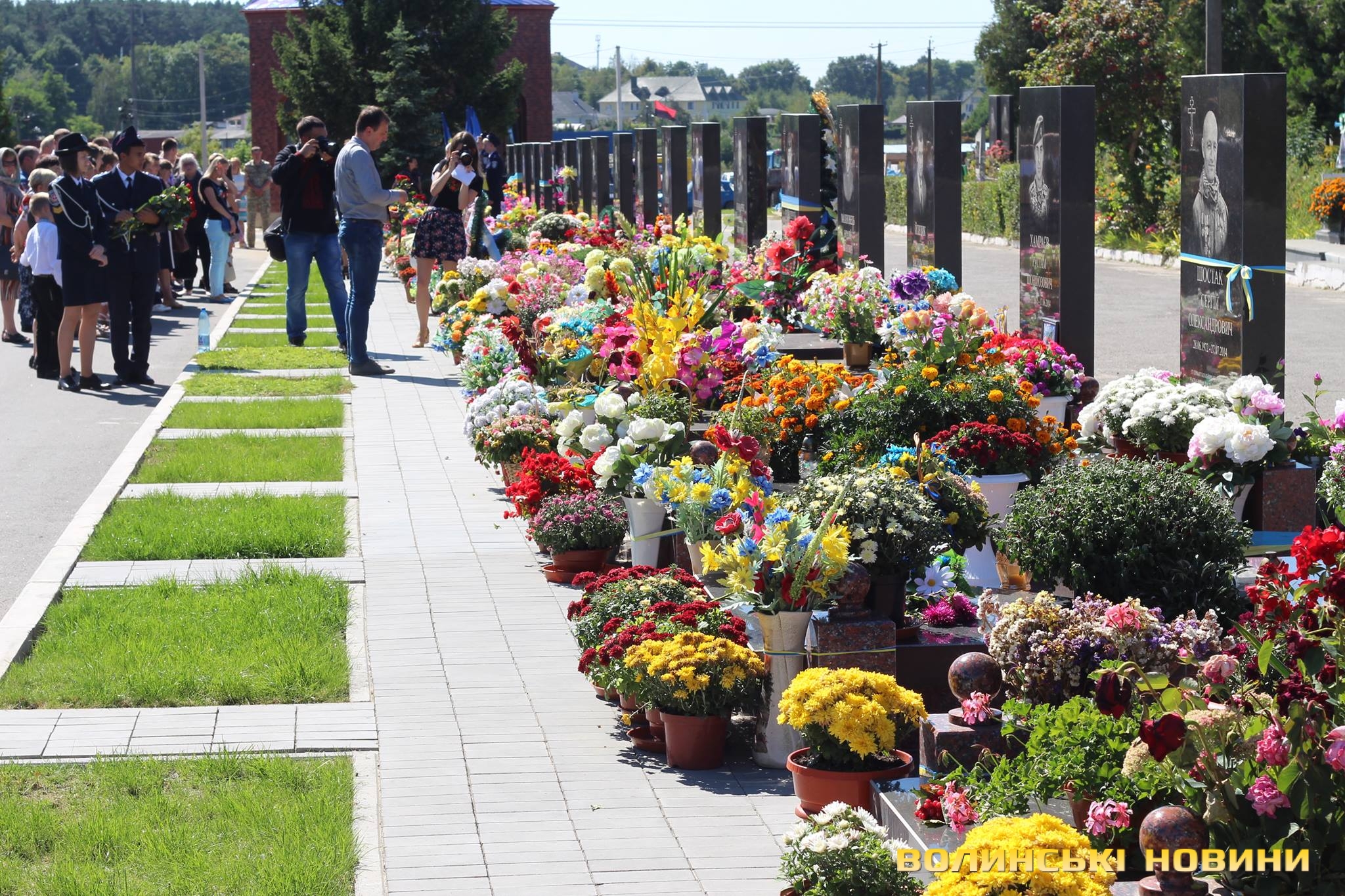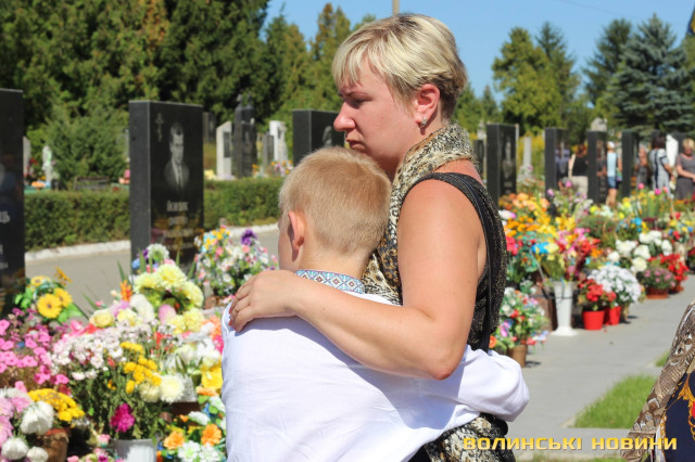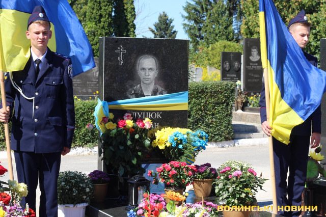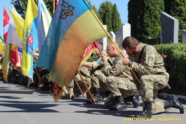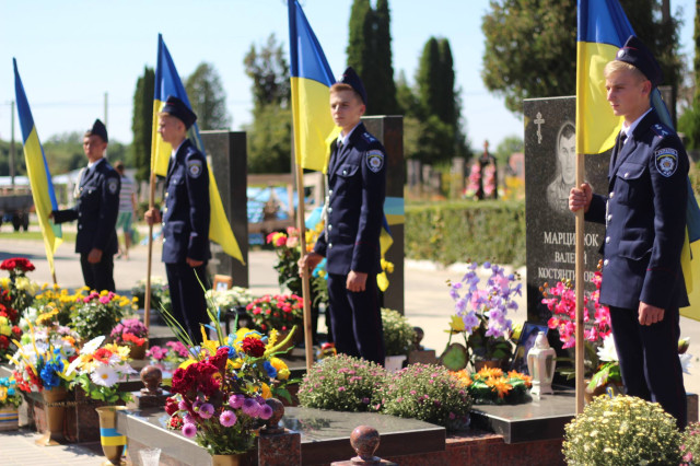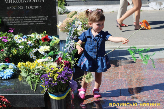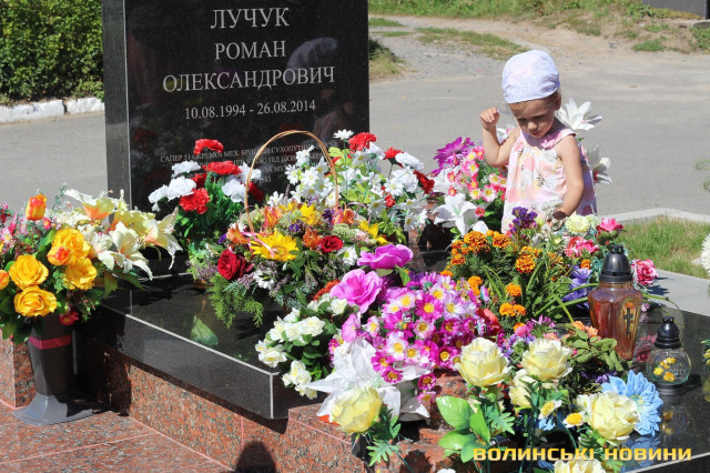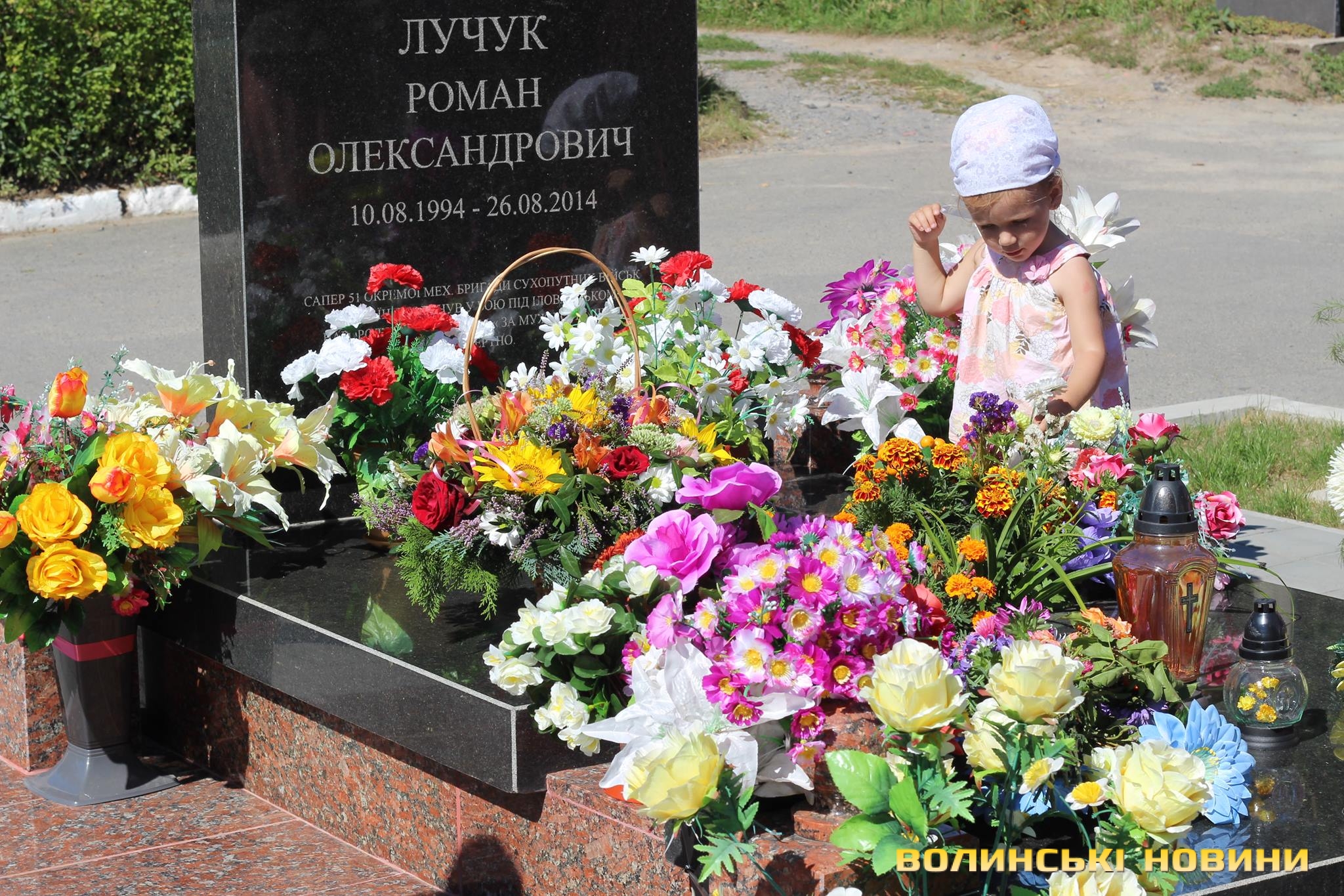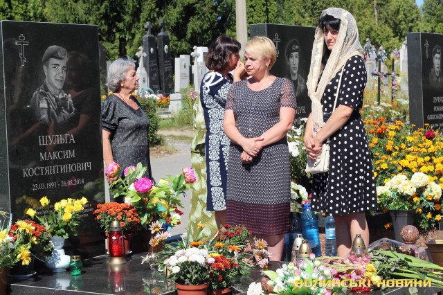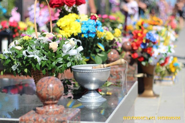Двадцять п’ять героїв спочивають на Алеї почесних поховань. Представники духовенства прочитали молитву за усіх, хто знайшов вічний спокій на Алеї Слави.Після короткої панахиди та хвилини мовчання, священник освятив пам’ятники чотирьох загиблих військовослужбовців Сергія Грибкова, Віктора Кумецького, Валерія Марцинюка та Романа Луцюка.Військові та представники різних добровольчих батальйонів встали на коліна перед полеглими та їхніми мужніми сім’ями. Родини загиблих поклали квіти на місця поховання своїх героїв.