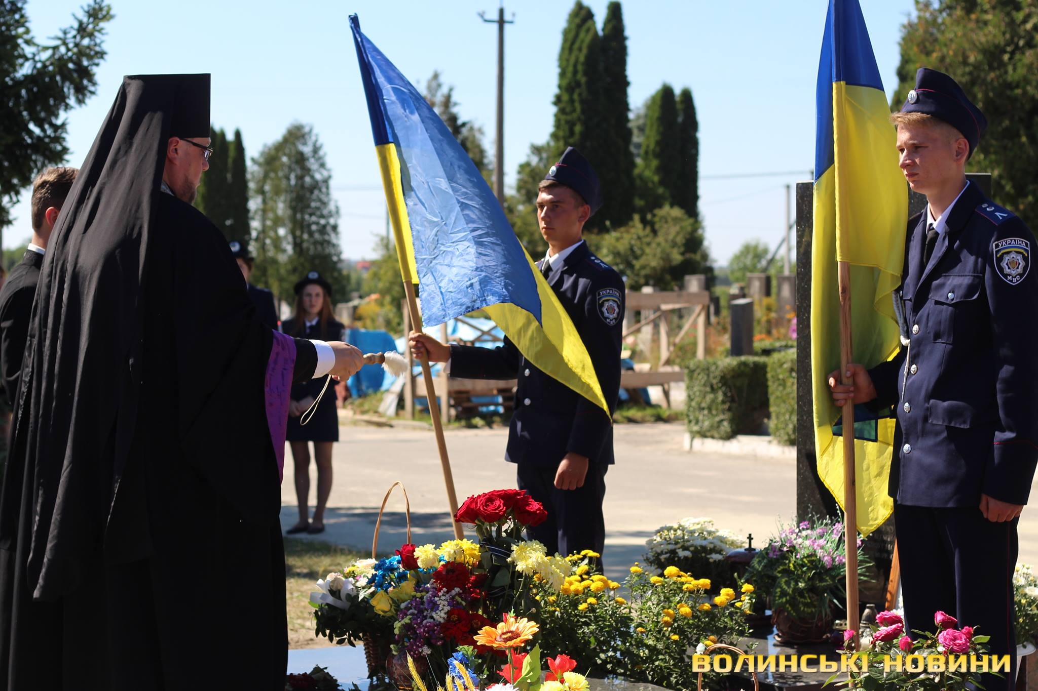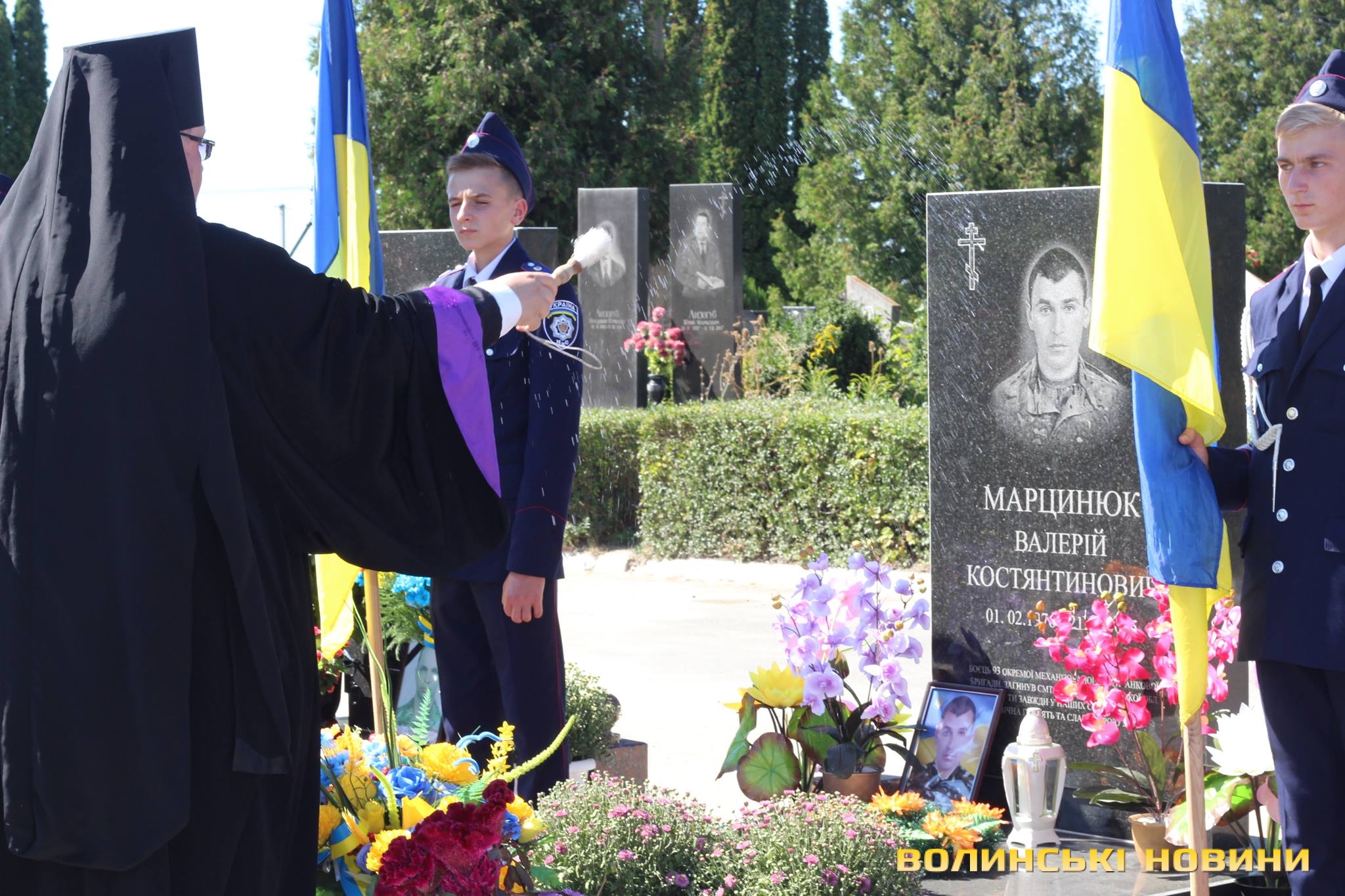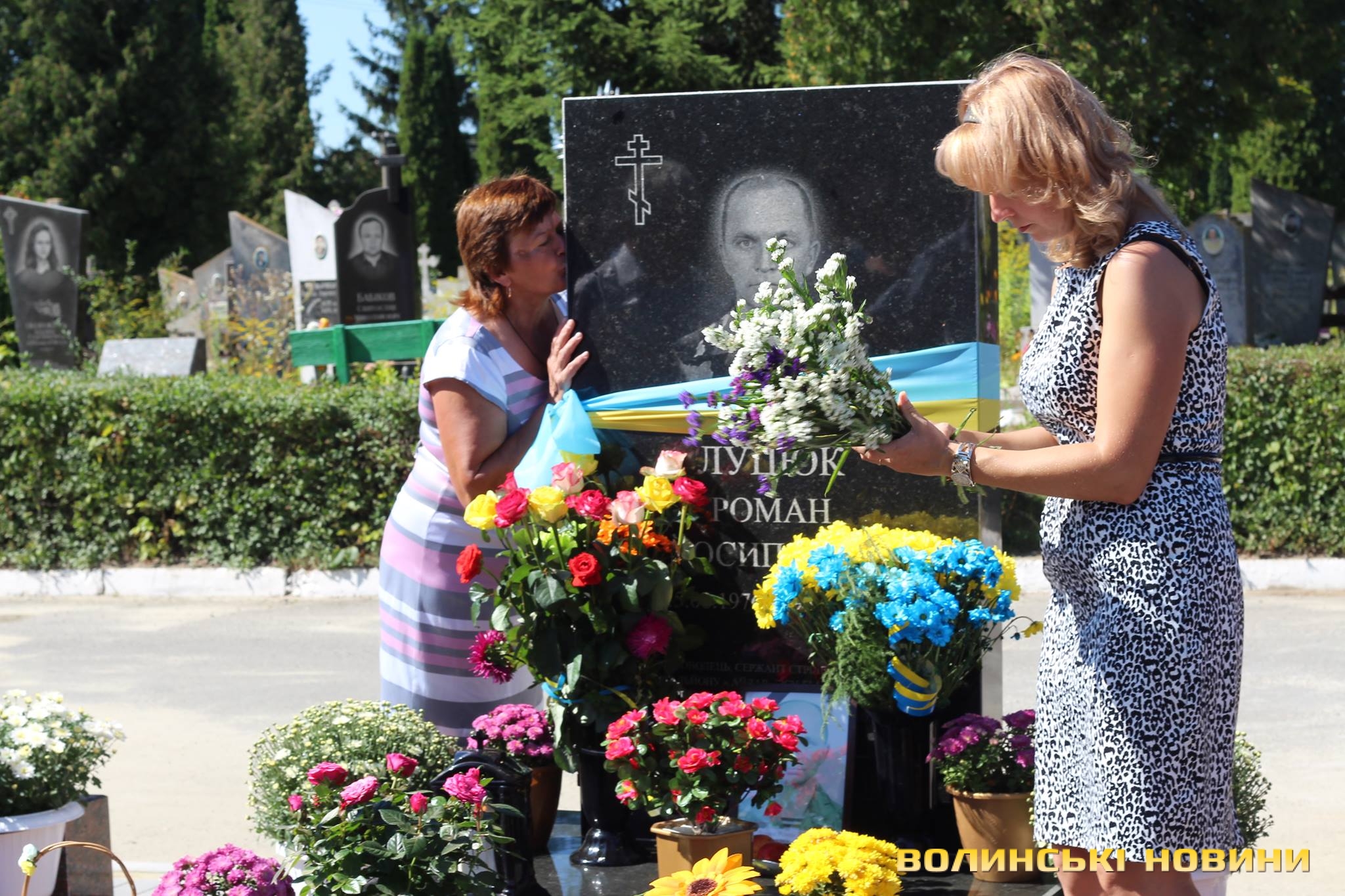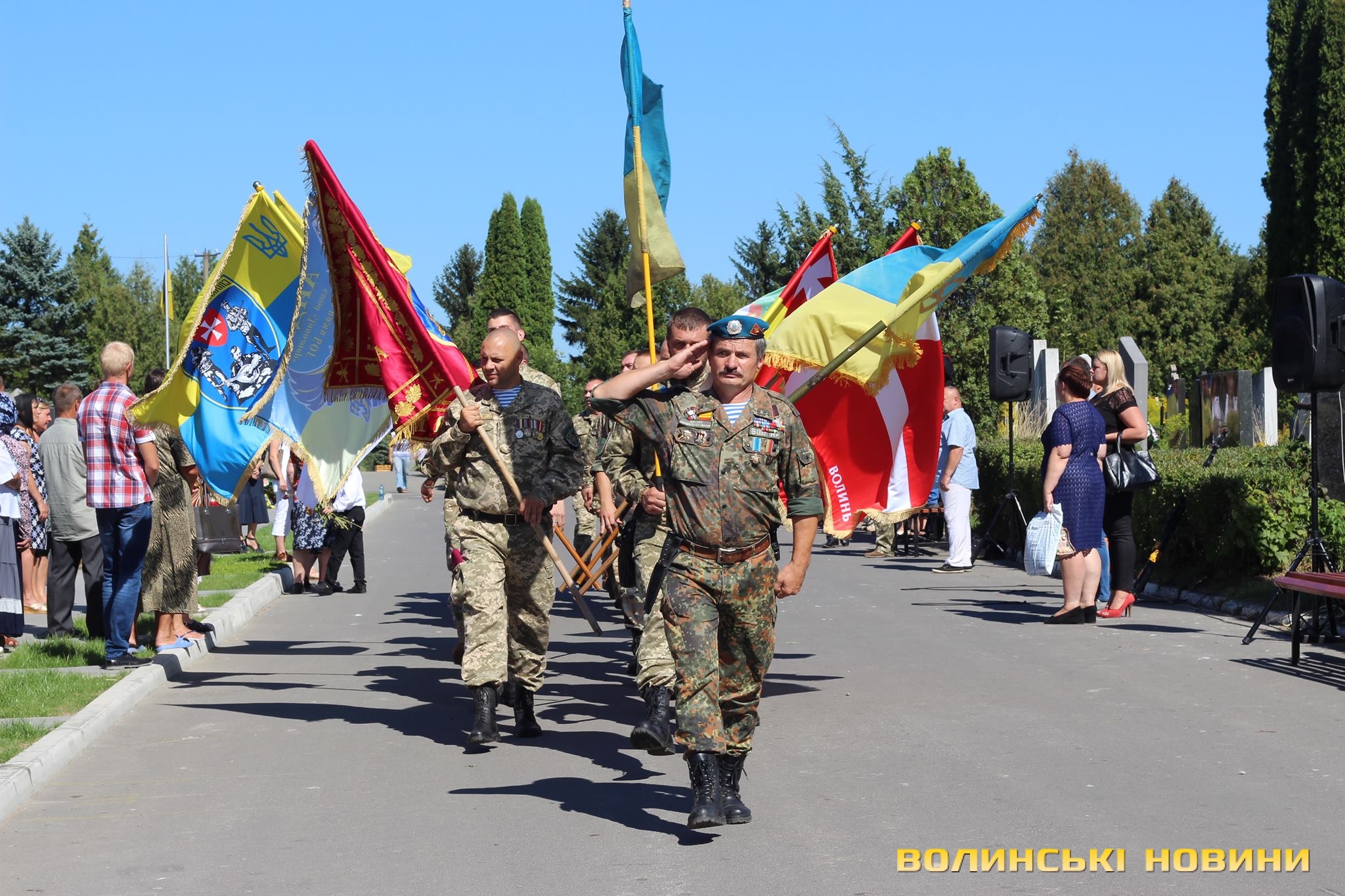 Двадцять п’ять героїв спочивають на Алеї почесних поховань. Представники духовенства прочитали молитву за усіх, хто знайшов вічний спокій на Алеї Слави.Після короткої панахиди та хвилини мовчання, священник освятив пам’ятники чотирьох загиблих військовослужбовців Сергія Грибкова, Віктора Кумецького, Валерія Марцинюка та Романа Луцюка.Військові та представники різних добровольчих батальйонів встали на коліна перед полеглими та їхніми мужніми сім’ями. Родини загиблих поклали квіти на місця поховання своїх героїв.