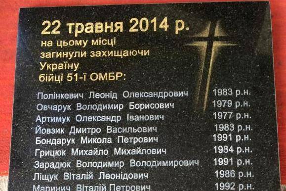 На місці загибелі 17-ти бійців 51 ОМБ встановлять меморіальну дошку