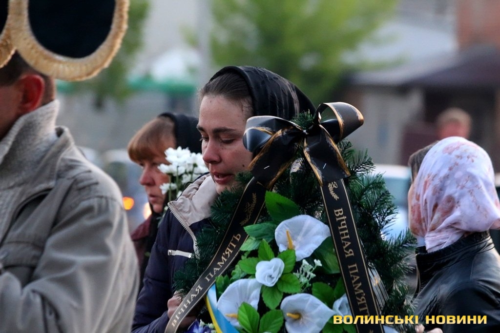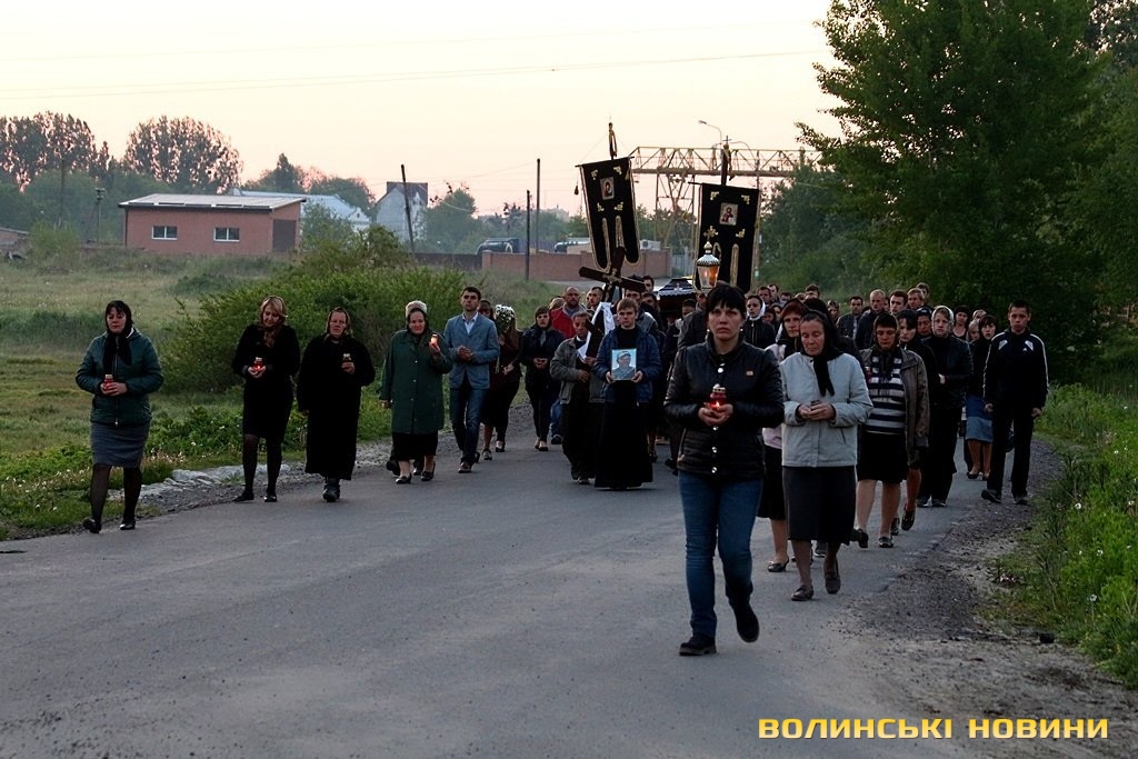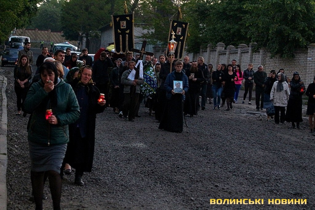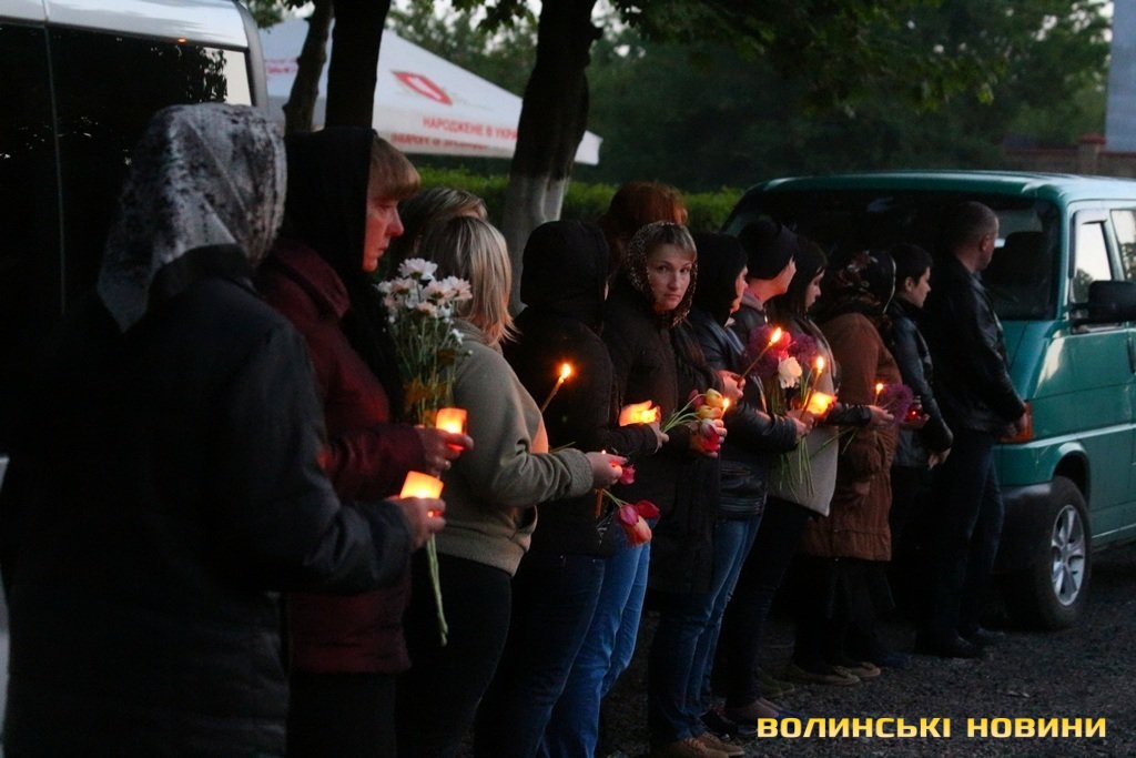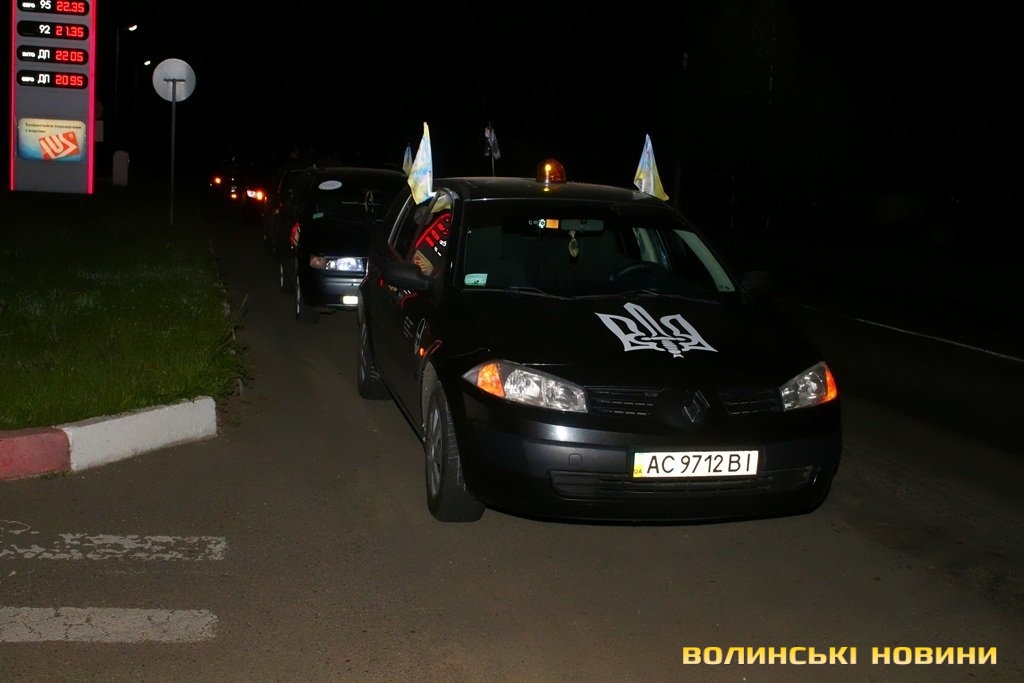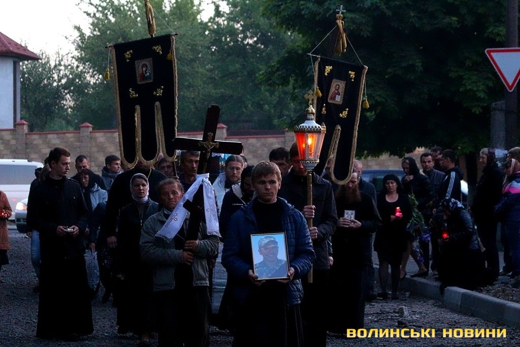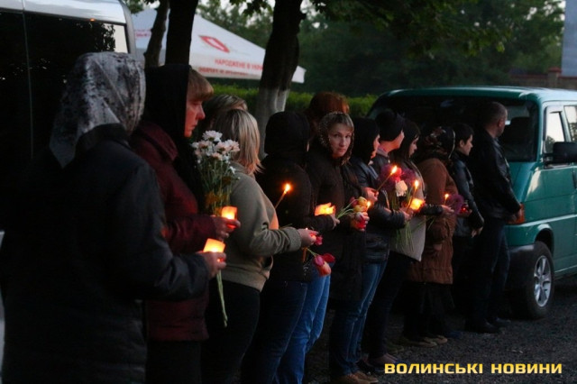 Так, близько 4 ранку авто добровольців із гуманітарної місії «Чорний тюльпан» на Цуманському перехресті зустріли працівники ДАІ та активісти ГО «Автомайдан України», які жалобним кортежем супроводжували «воїна світла» до села Великий Омеляник Луцького району, там за життя й мешкав боєць.