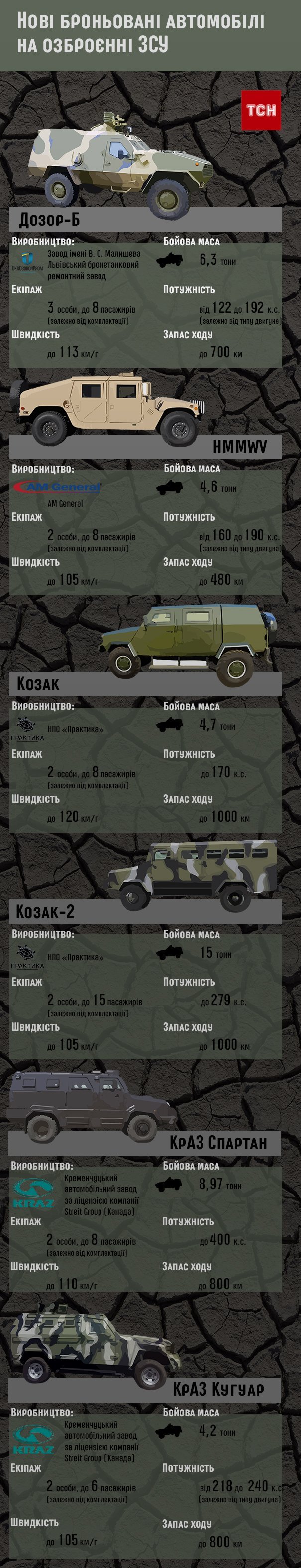 Нові броньовані автівки на озброєнні ЗСУ. Інфографіка