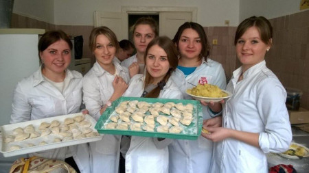 Нещодавно волонтери Луцького базового медичного коледжу наліпили для бійців 25 відер (125 літрів) вареників з картоплею. Вареники відварили та залили смальцем для тривалого зберігання.