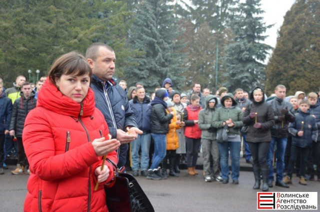 Щоб вшанувати Героя на площі у Рожищі зібралися понад три сотні людей. У руках багатьох – запалені свічки, червоні гвоздики, а на очах - сльози.