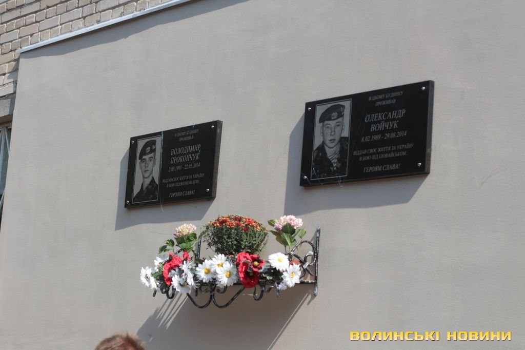 Меморіальні дошки лучанам Володимиру Прокопчуку та Олександру Войчуку встановили на будинку, де проживали юнаки - на бульварі Дружби народів, 2 у Луцьку. 23-річний Володимир поклав життя у трагічному бою під Волновахою, 25-річний Олександр загинув під час виходу з іловайського котла.