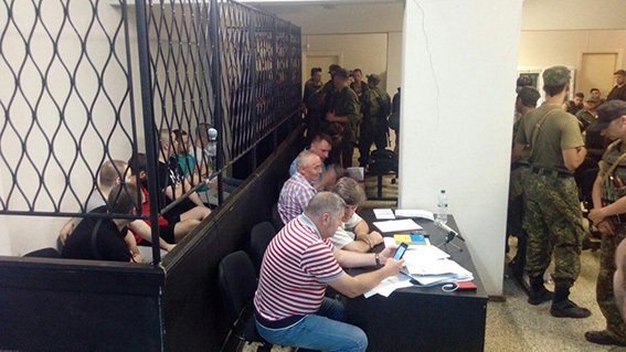 Підсудних, які вибили ґрати, довелося повертати силою в клітку.