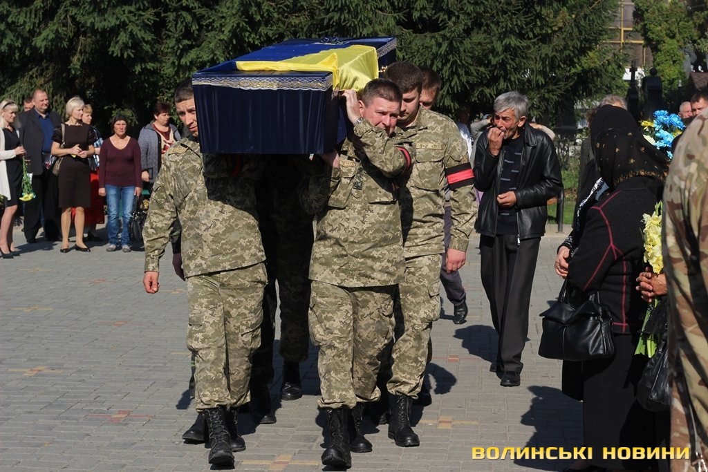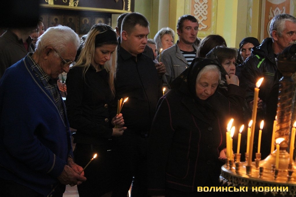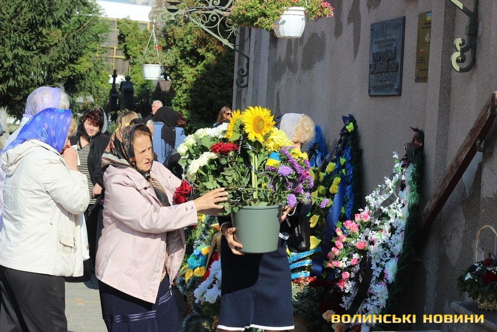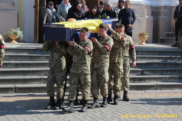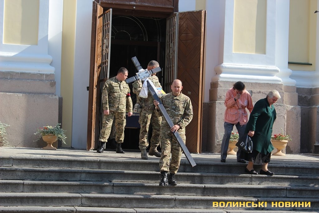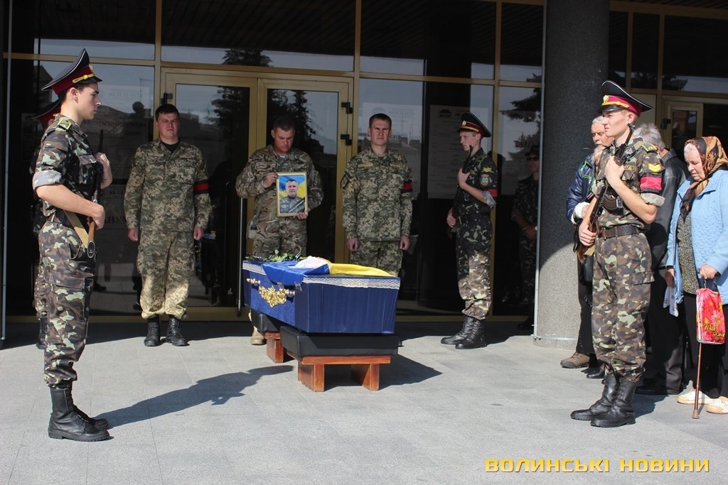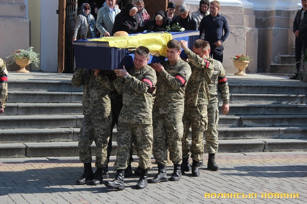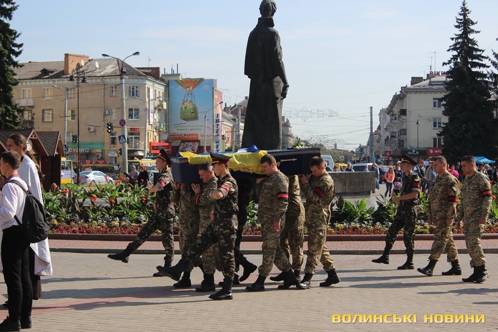 «Скорботний дзвін і новина зібрали нас сьогодні у цьому кафедральному Соборі, щоби провести в останню дорогу з пошаною Героя та воїна, який, захищаючи рідну державу, віддав найцінніше, що у нього було – життя. Людське життя подібне до свічі. Коли вона нова, велика й яскраво горить, на неї усі звертають увагу. Перед нею стоять і моляться, думаючи про сокровенне. І чим більше вона догоряє до кінця, тим все менше ми на неї звертаємо увагу. Але є випадок, коли велика свіча від температури гнеться. І ти думаєш: «Чому? Свічка повинна стояти рівно, але вона зігнулась і не горить». З’являється внутрішній спротив, бо так не повинно бути. Неправильно це, не по-божому, не по-людськи. Але так є. Й сьогодні випробовується душа кожної людини: чого вона варта, які її цінності. Випробовується душа, першою чергою, тих сімей, що випровадили своїх чоловіків на фронт. І ми також, вся громада, розмірковуємо над тим, щоб швидше настав мир. Дякувати Богу, сьогодні маємо перемир’я, не так стріляють і не так масово гинуть наші чоловіки. Але відгомін цієї війни лунатиме ще довго. Ще часто ми будемо проливати сльози, дізнавшись, що знову когось знайшли. Але при цьому ми знаємо, заради чого загинули ці люди – заради України. Воістину великий подвиг здійснює людина, живучи на землі. Але найбільшим подвигом є покласти душу свою за ближніх своїх. Ми гордимось, що є у нас такі чоловіки і це надихає на життя. Вшановувати те, що дає нам Господь нині – кожну мить спілкування, й кожну мить праці. Ми не лише з почестями ховаємо, але найцінніше – це вдячна молитва, і наша пам'ять. Бо ніхто не забутий, і ніщо не забуте», - сказав під час заупокійної проповіді митрополит Луцький та Волинський Михаїл.Після відспівування труну із тілом Героя понесли на Театральний майдан міста. Провести бійця в останній путь прийшли не лише родичі та друзі загиблого, а й небайдужі лучани. Щирих сліз під акорди тужливої пісні-реквієму «Пливе кача» не стримував ніхто.